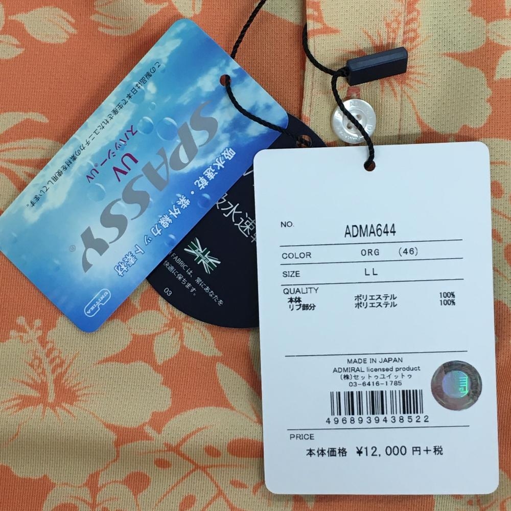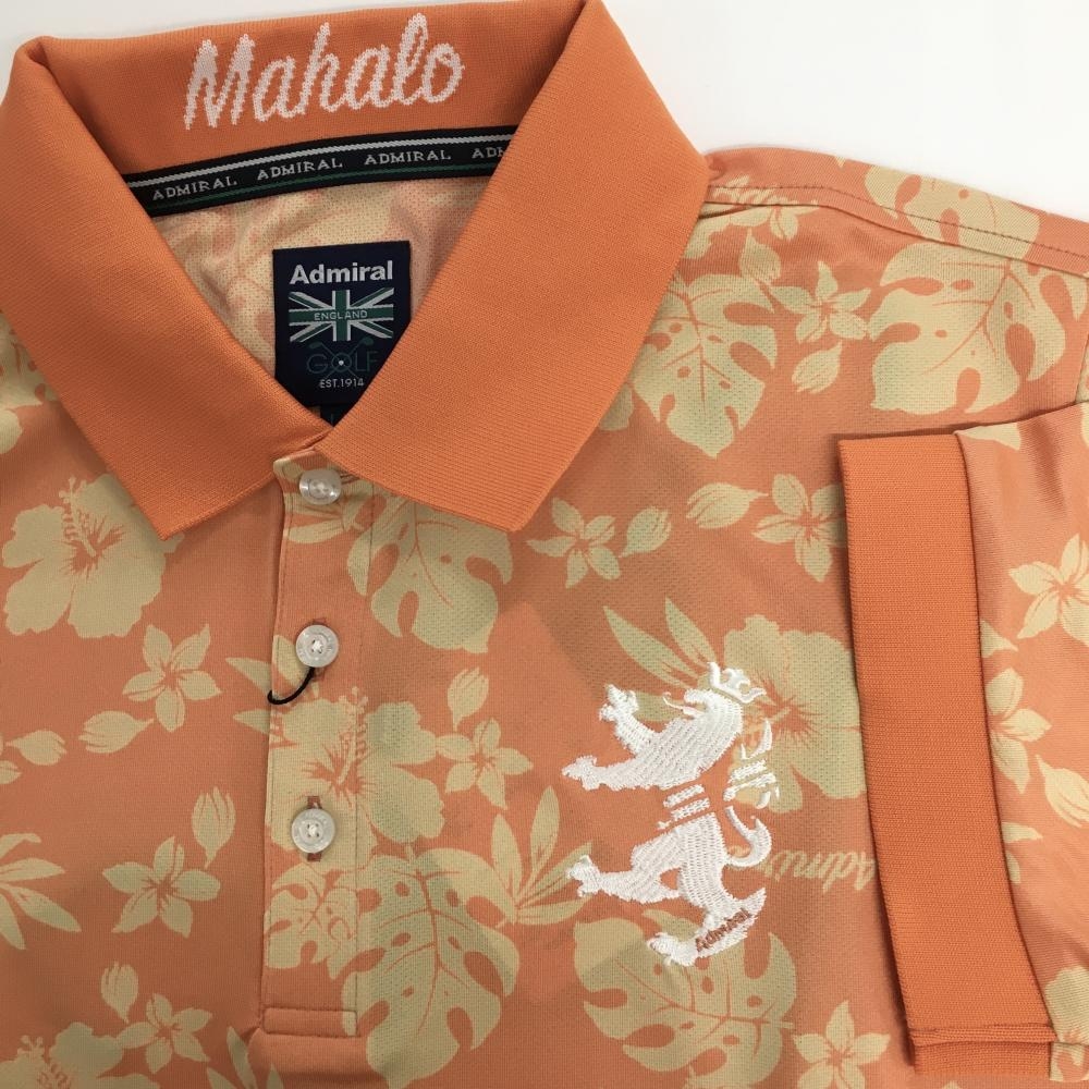 【新品】アドミラル 半袖ポロシャツ オレンジ×ライトオレンジ リーフ柄 メンズ LL ゴルフウェア Admiral