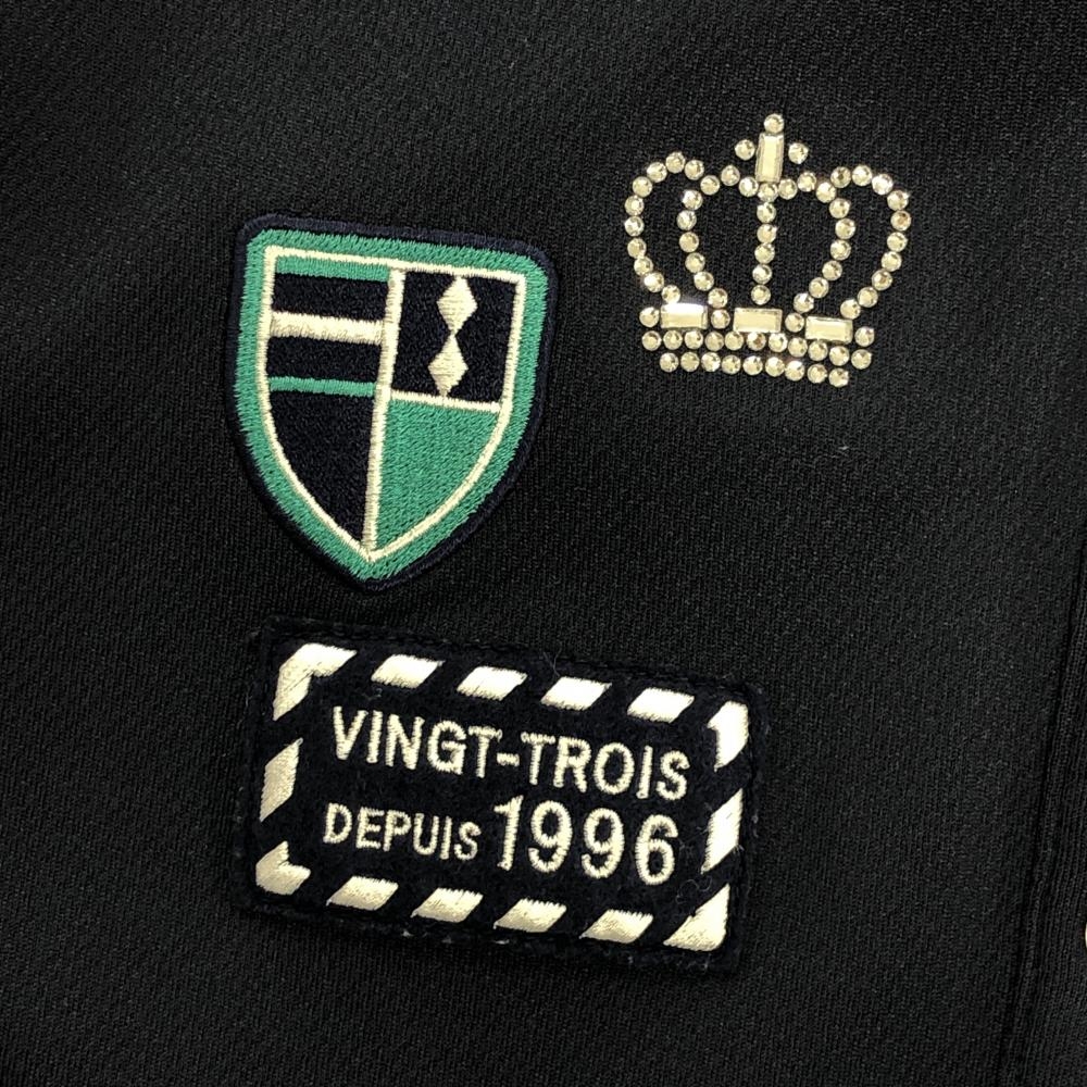 【超美品】23区ゴルフ 半袖ポロシャツ ネイビー×白 ラインストーン 王冠 レディース S ゴルフウェア 23区