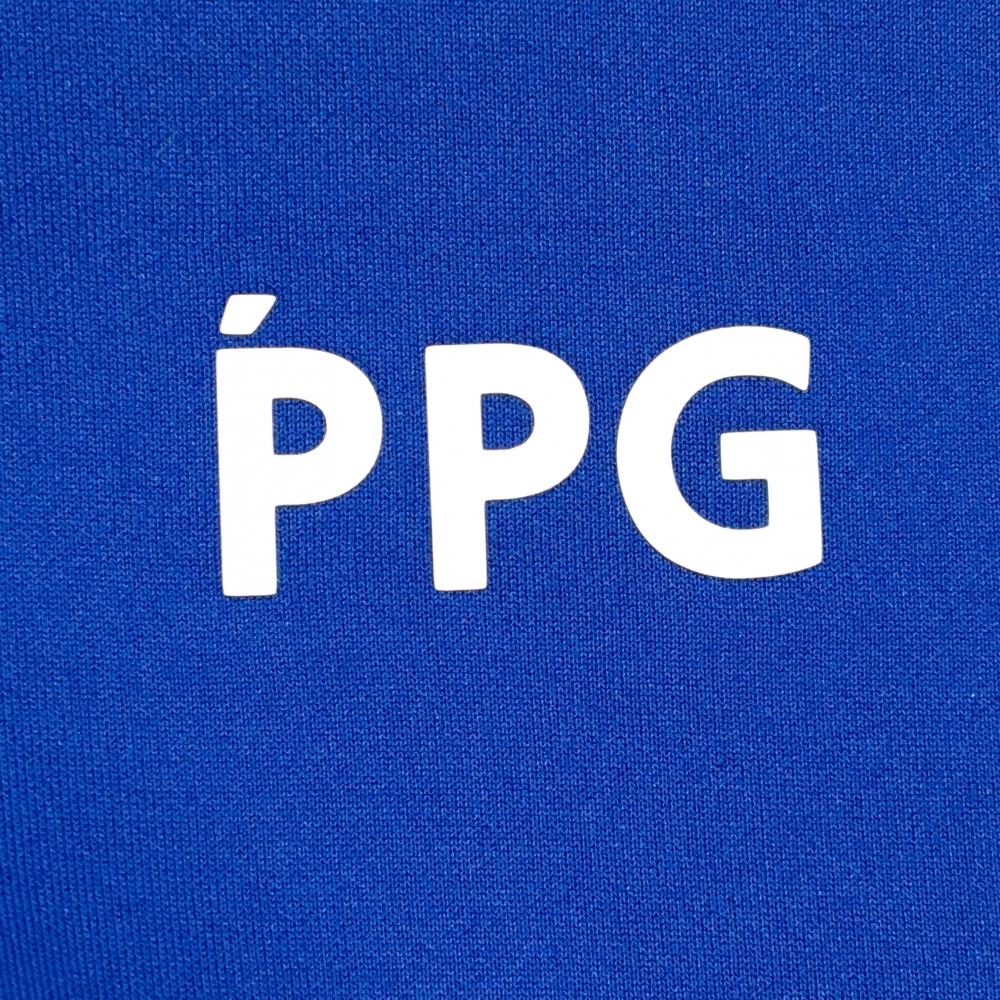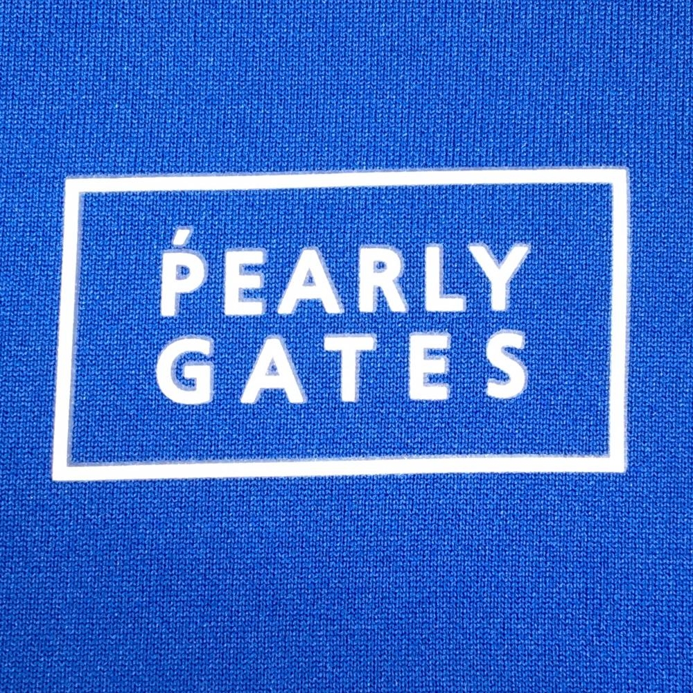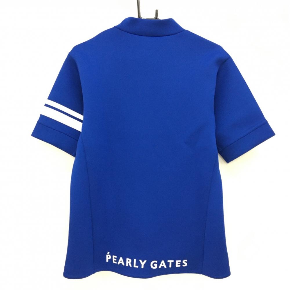 【超美品】パーリーゲイツ×PPG 半袖ハイネックトレーナー ブルー×白 袖2ライン ダンボールニット メンズ 4(M) ゴルフウェア PEARLY GATES