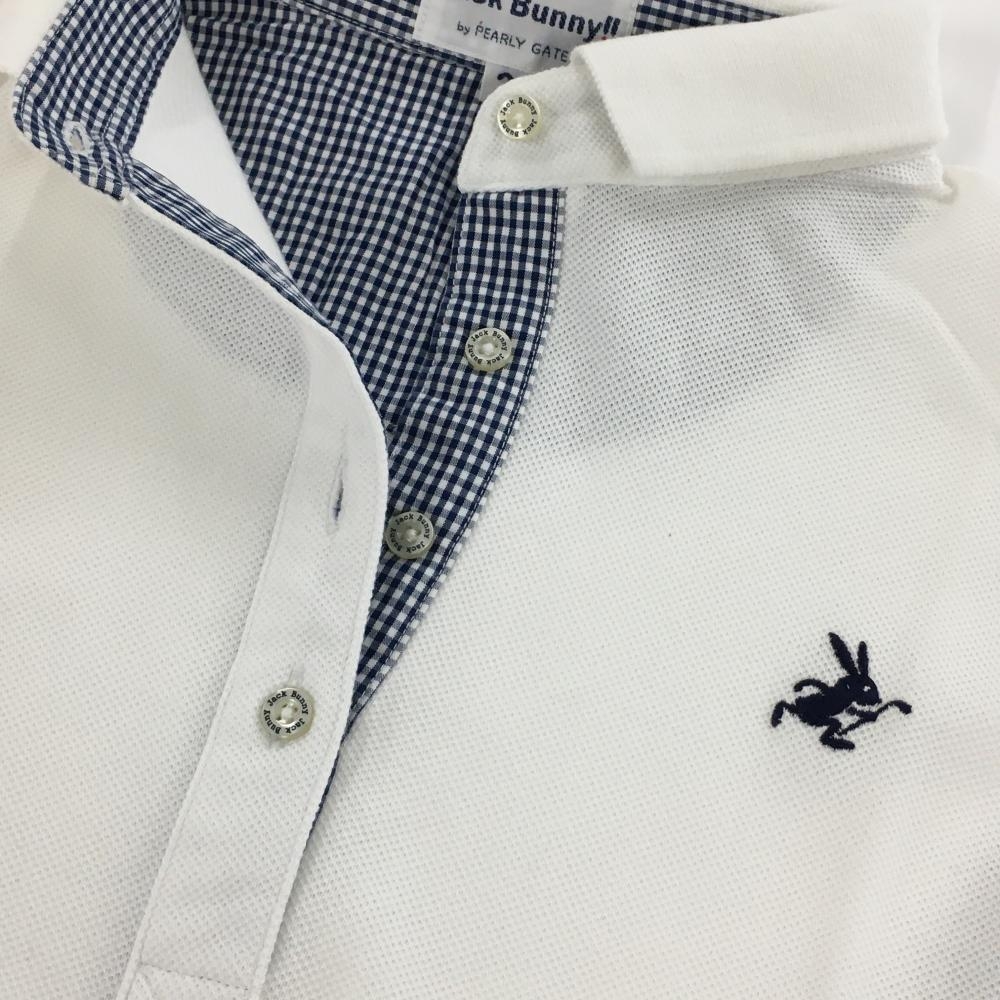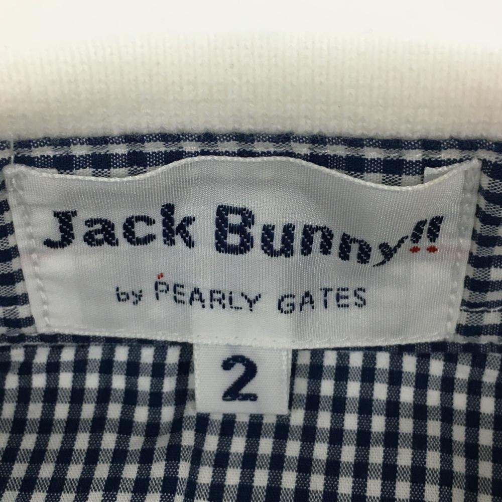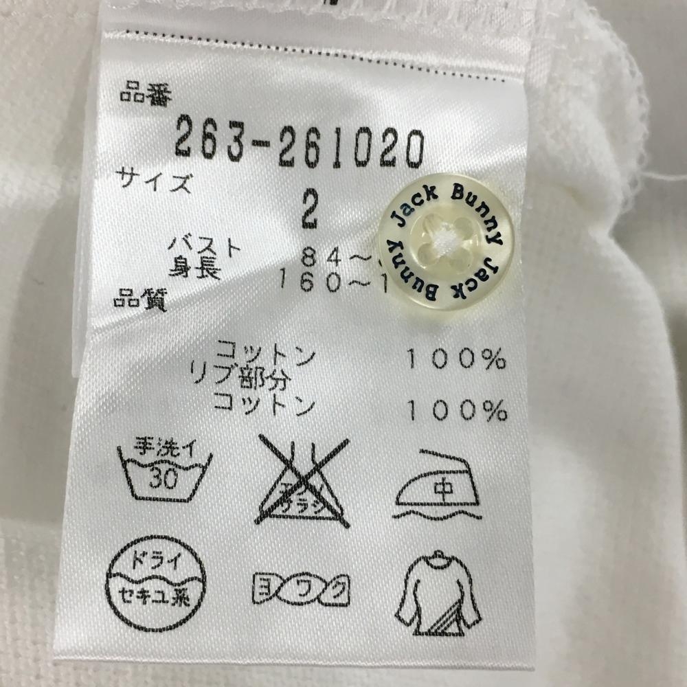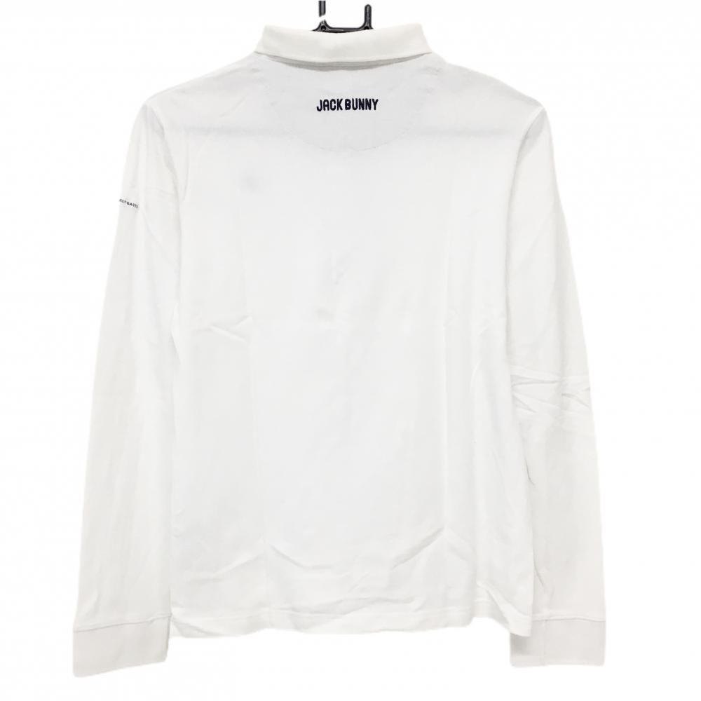 【美品】ジャックバニー 長袖ポロシャツ 白×ネイビー ロゴ刺しゅう レディース 2(L) ゴルフウェア Jack Bunny