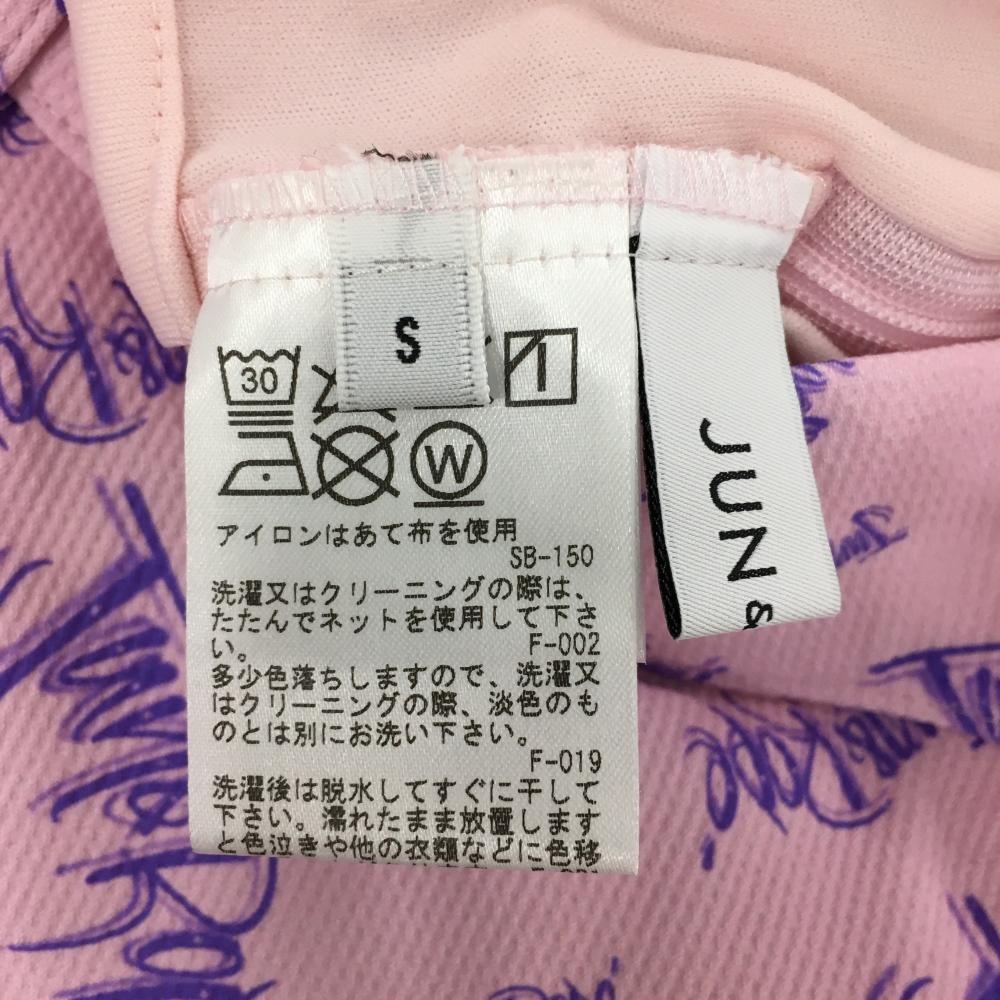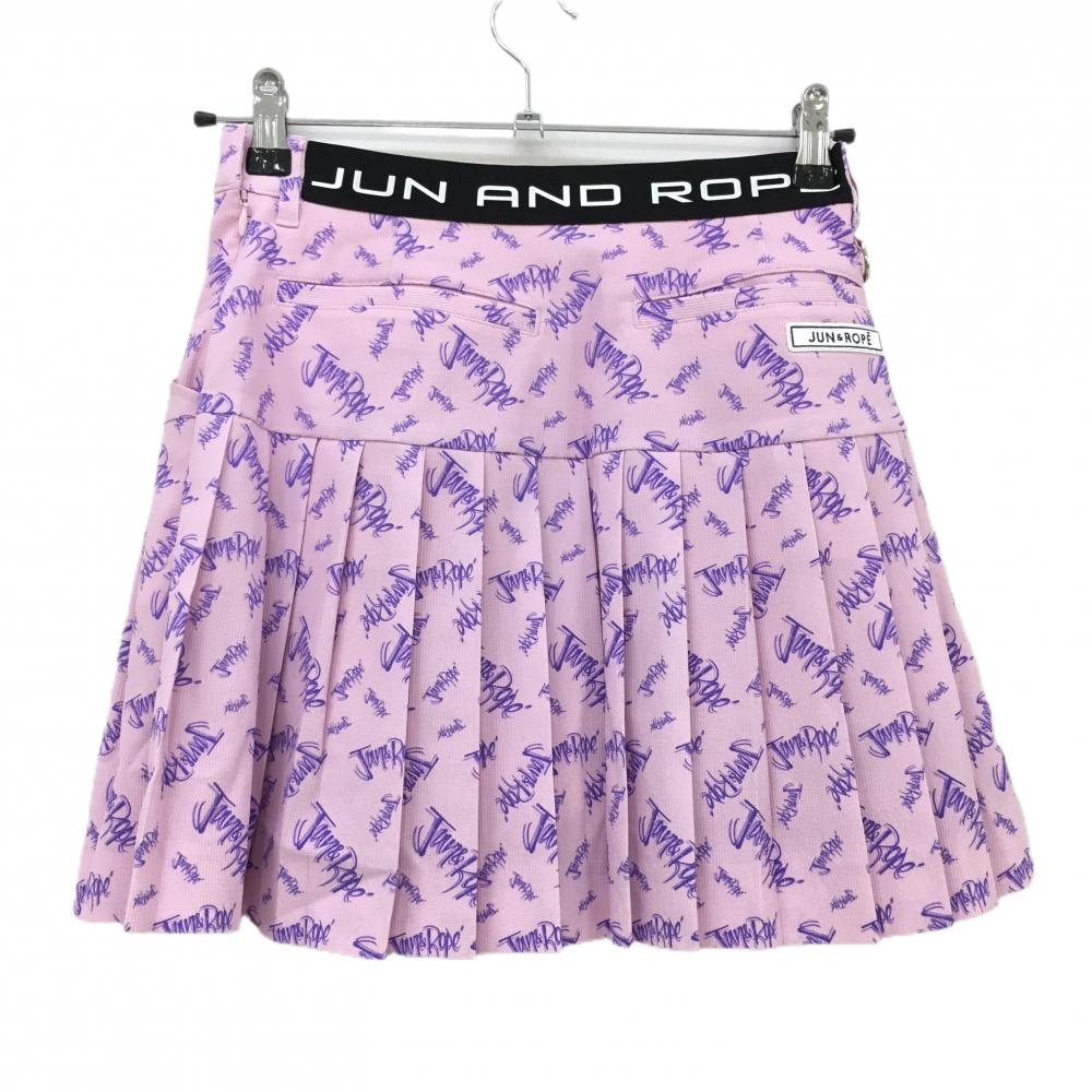【美品】ジュンアンドロペ プリーツスカート ピンク×パープル ロゴ総柄 内側インナーパンツ レディース S ゴルフウェア JUN&ROPE