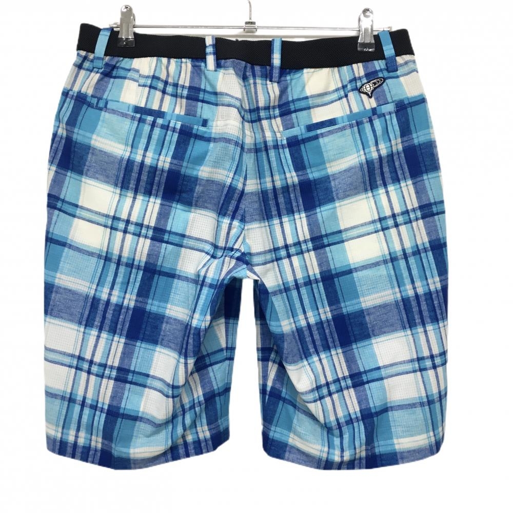 【超美品】ビームスゴルフ ハーフパンツ ブルー×白 チェック メッシュ調 メンズ 48 ゴルフウェア 2022年モデル BEAMS GOLF