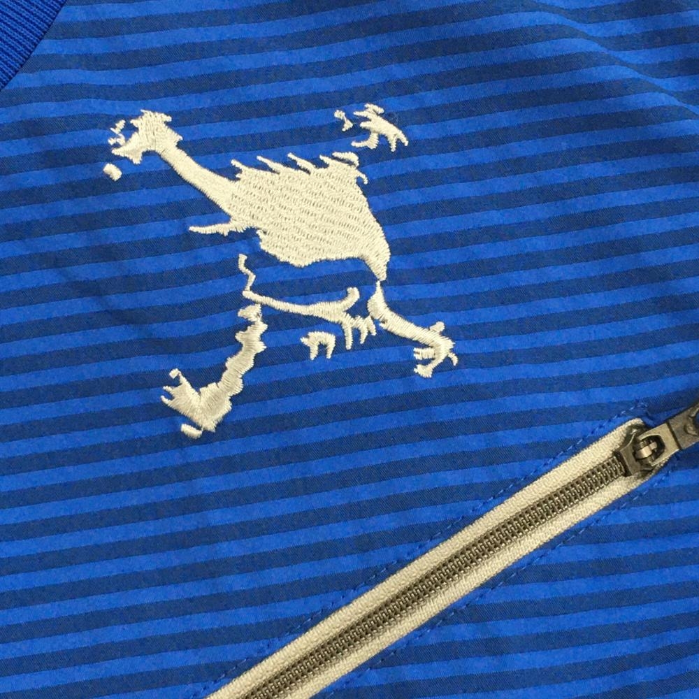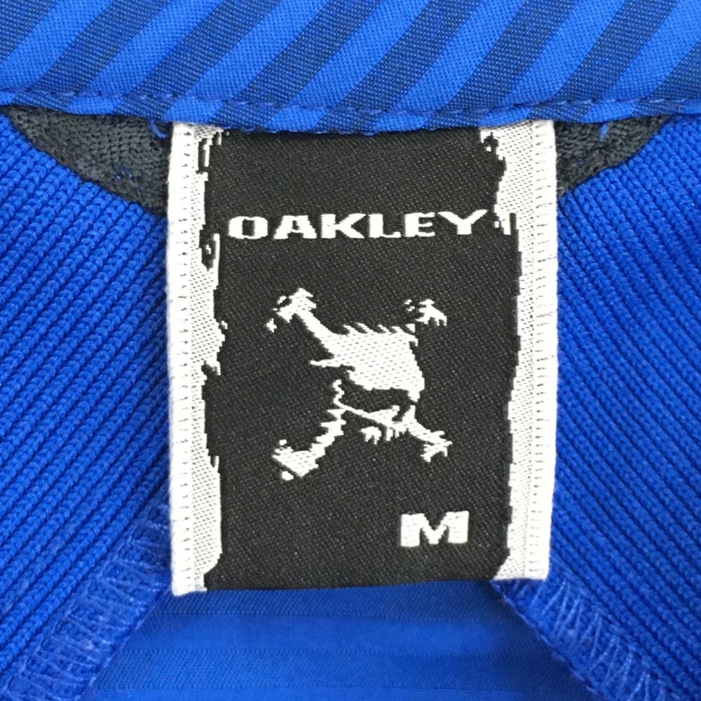 【超美品】オークリー スニード ブルー×ネイビー ボーダー ロゴ刺しゅう サイドジップ ブルゾン メンズ M ゴルフウェア Oakley
