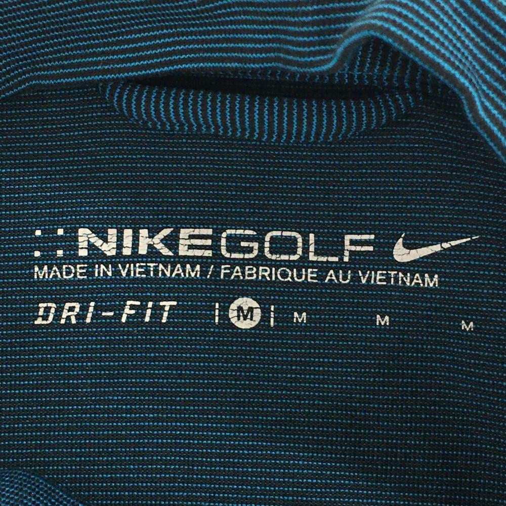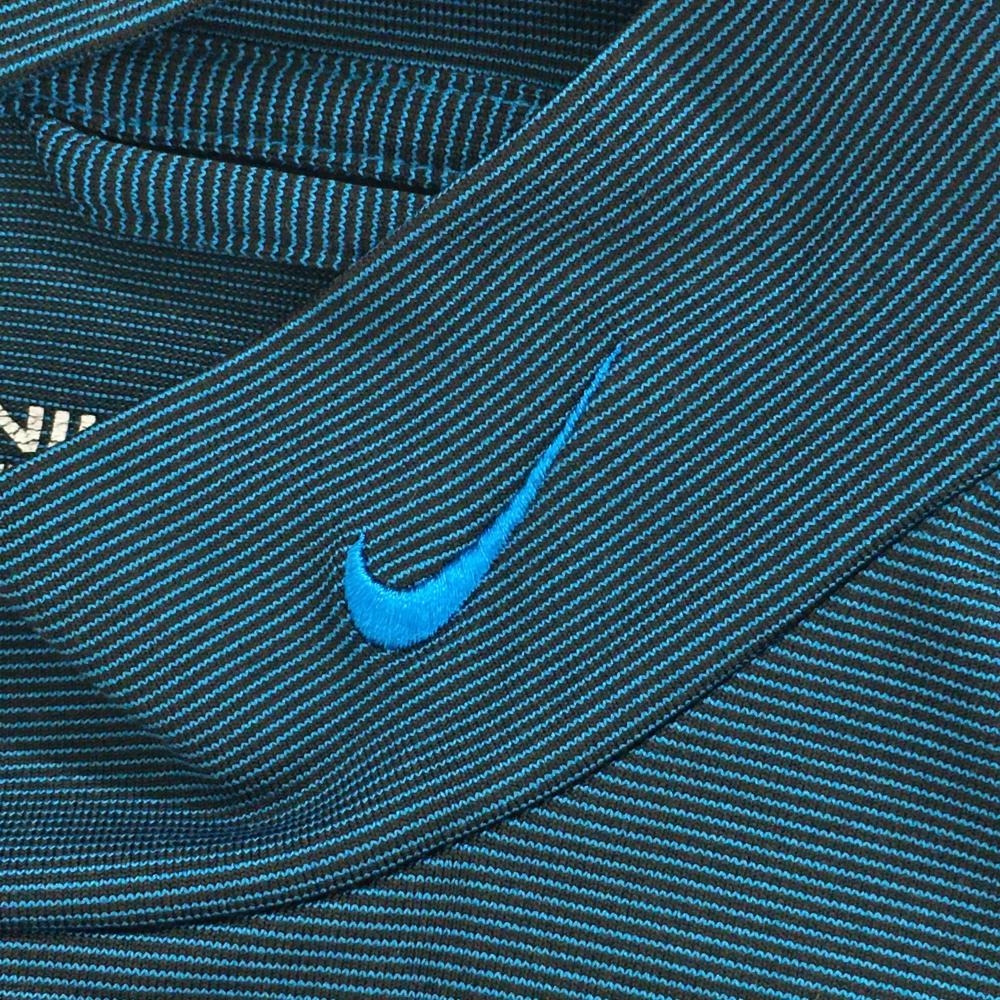 ナイキゴルフ 長袖ハイネックシャツ ブルー×黒 細ボーダー ネックロゴ メンズ M ゴルフウェア NIKE