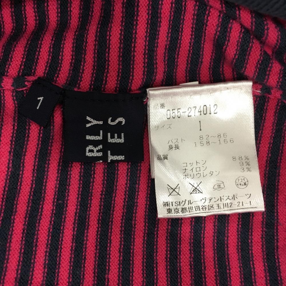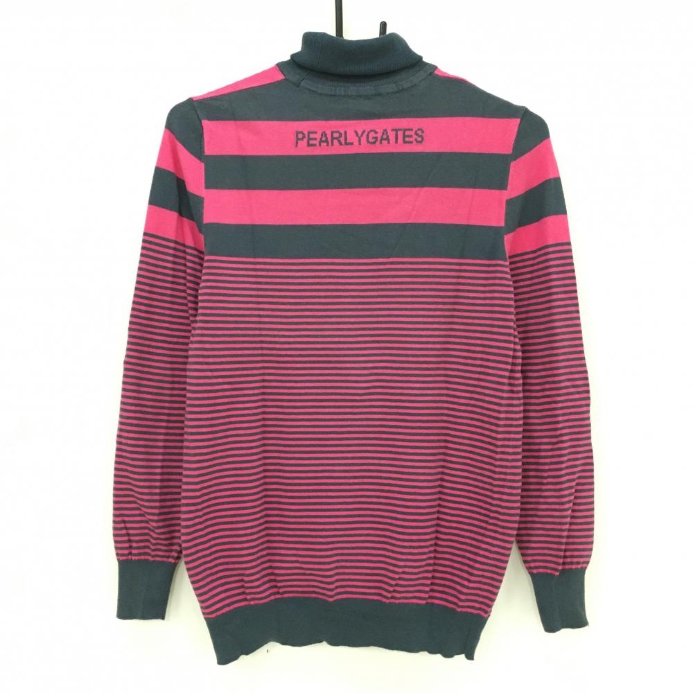パーリーゲイツ タートルネックセーター グレー×ピンク ボーダー コットン混 ニット レディース 1(M) ゴルフウェア PEARLY GATES