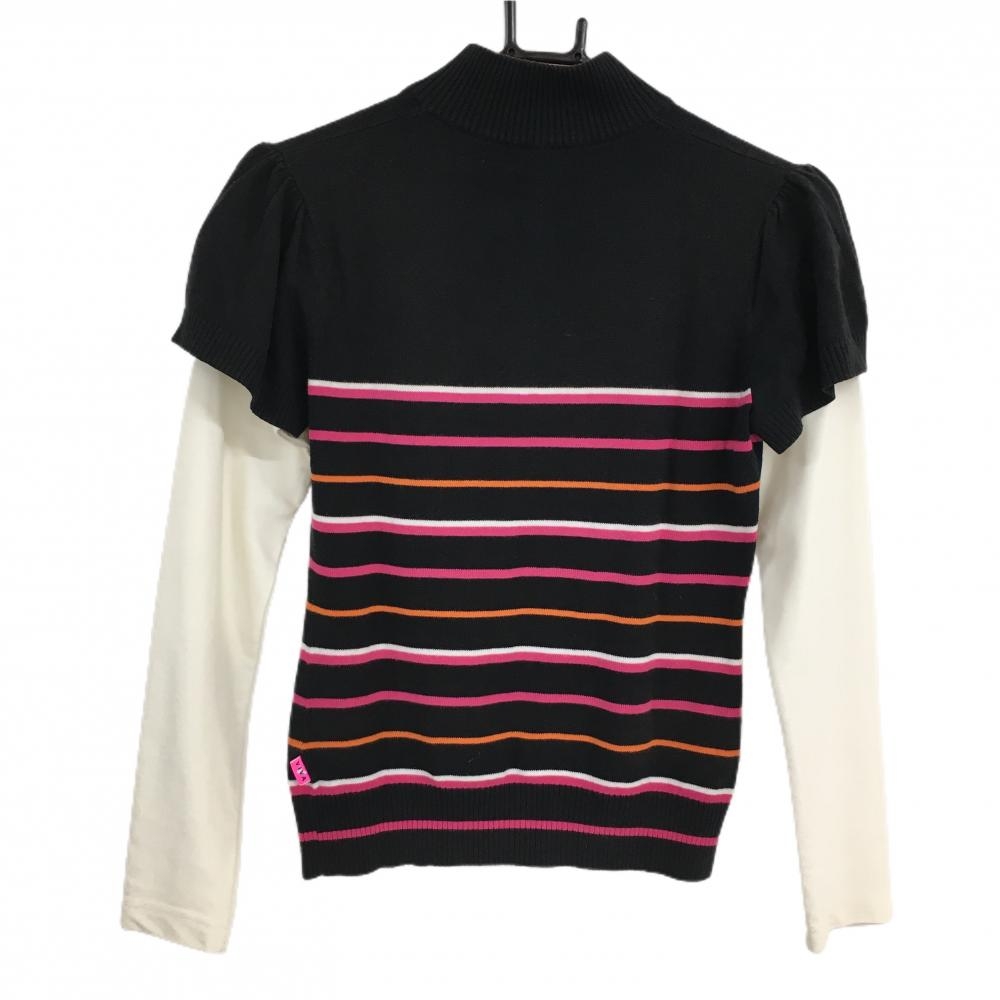 ビバハート セーター 黒×ピンク ボーダー フェイクレイヤード ニット レディース 40(M) ゴルフウェア VIVA HEART
