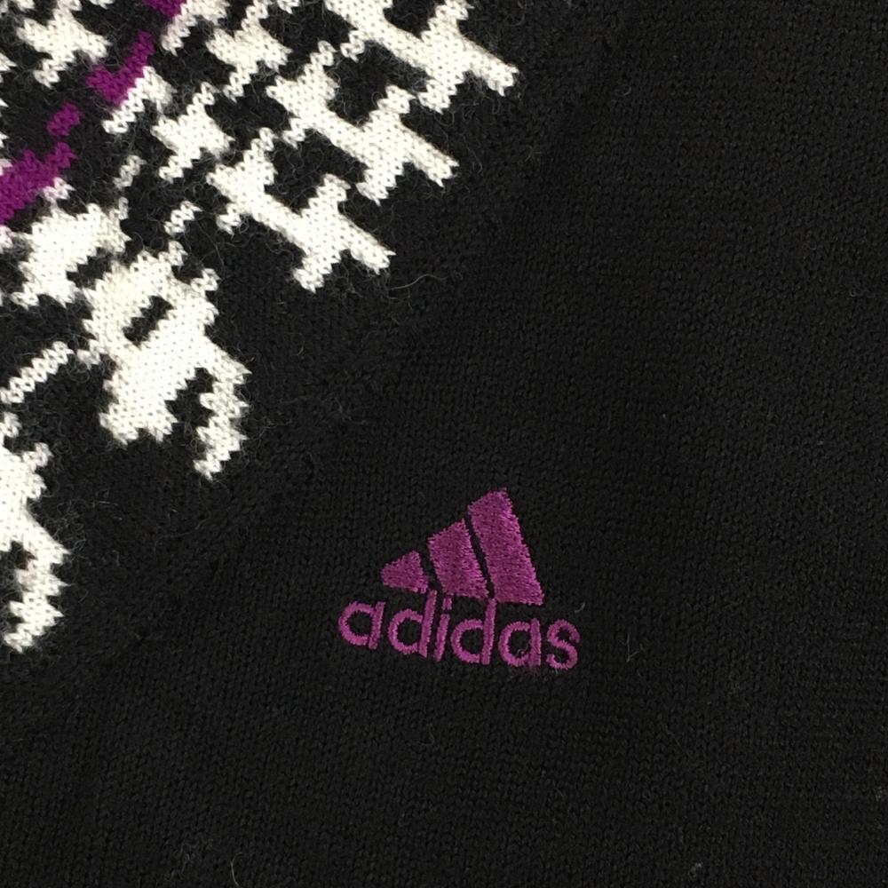 【超美品】アディダス セーター 黒×白 ネック周り柄編み ウール混 ニット レディース S/P ゴルフウェア adidas