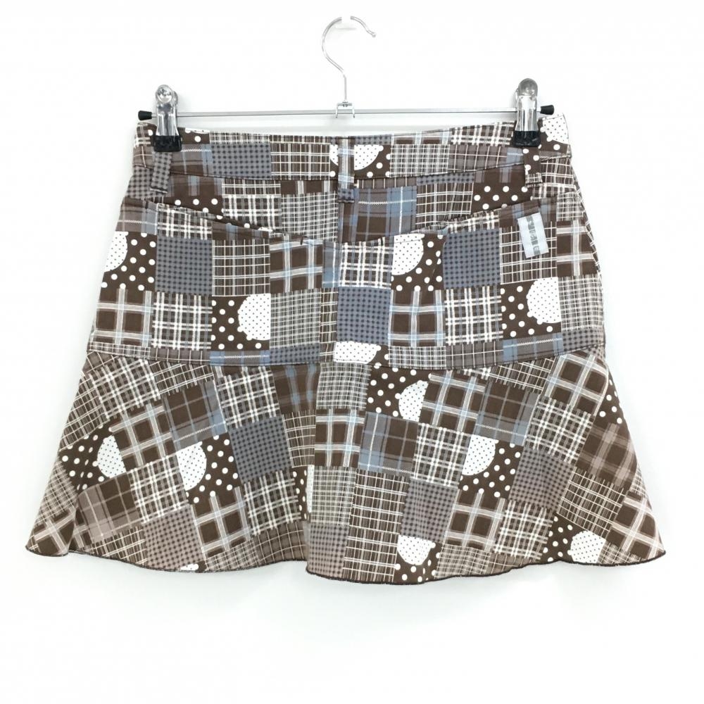 【超美品】ゾーイ スカート ブラウン×白 総柄 チェック バックロゴ レディース 38(M) ゴルフウェア ZOY