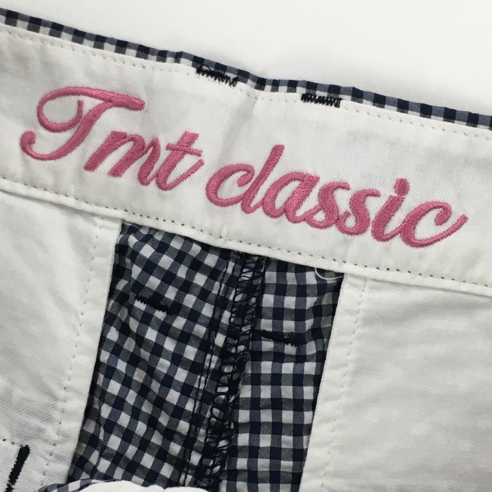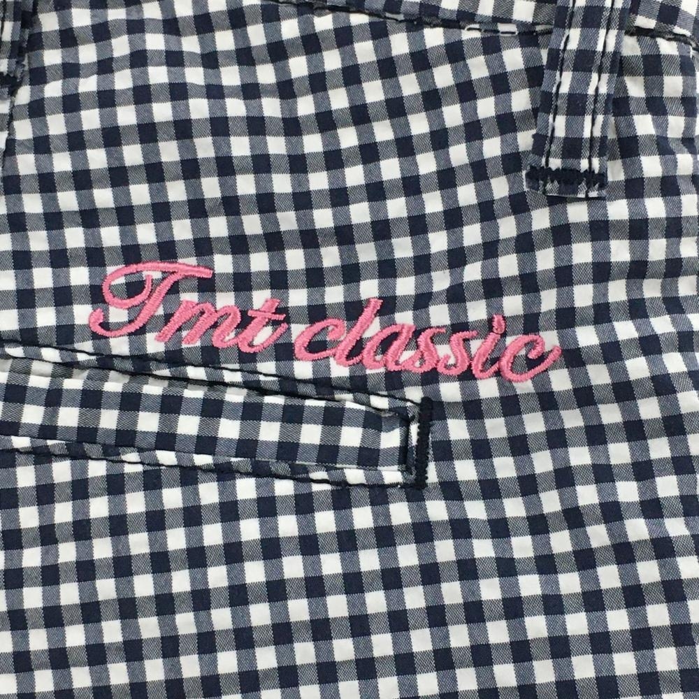 【美品】ティーエムティークラシック ハーフパンツ ネイビー×白 ギンガムチェック PROTOTYPE レディース S ゴルフウェア TMT CLASSIC