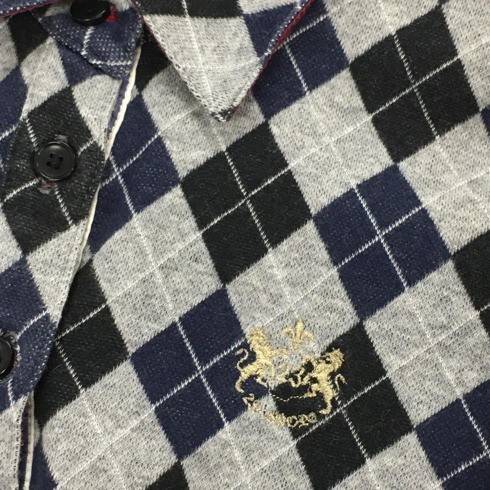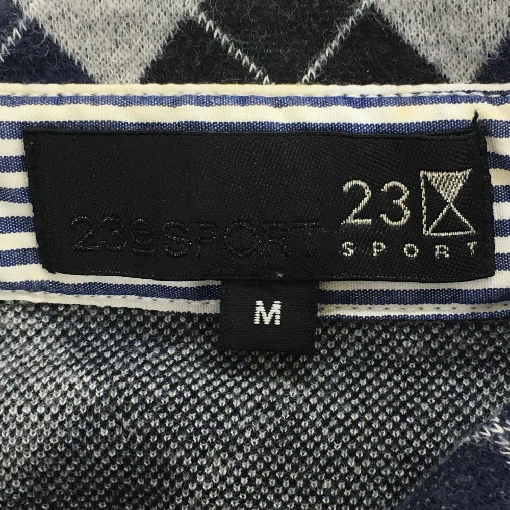 【超美品】23区スポーツ 長袖シャツ グレー×ネイビー×黒 アーガイル 微起毛 レディース M ゴルフウェア 23区