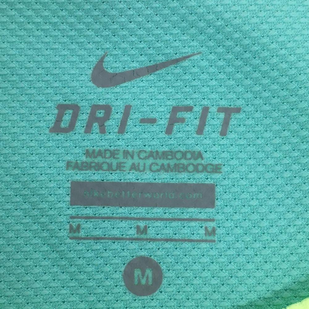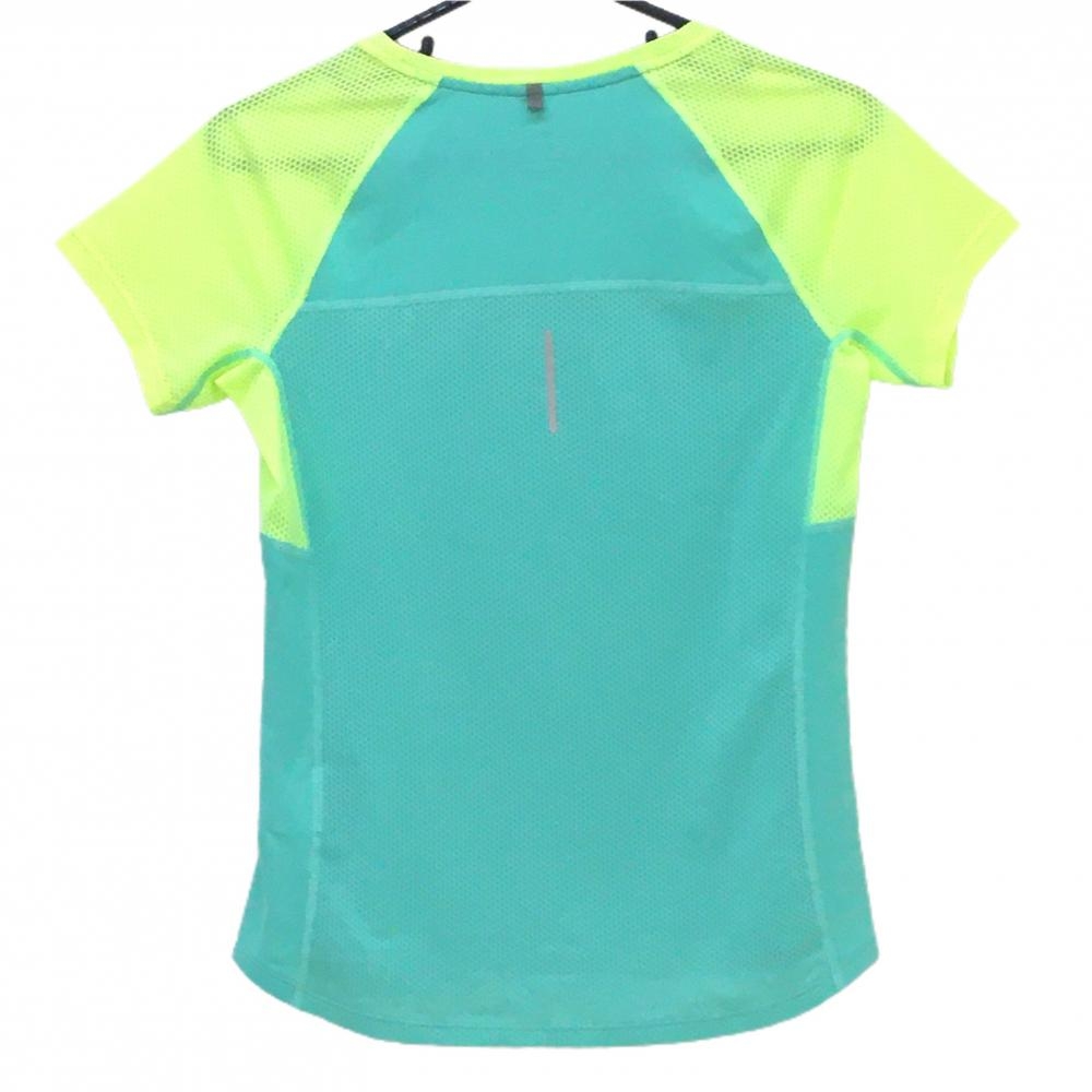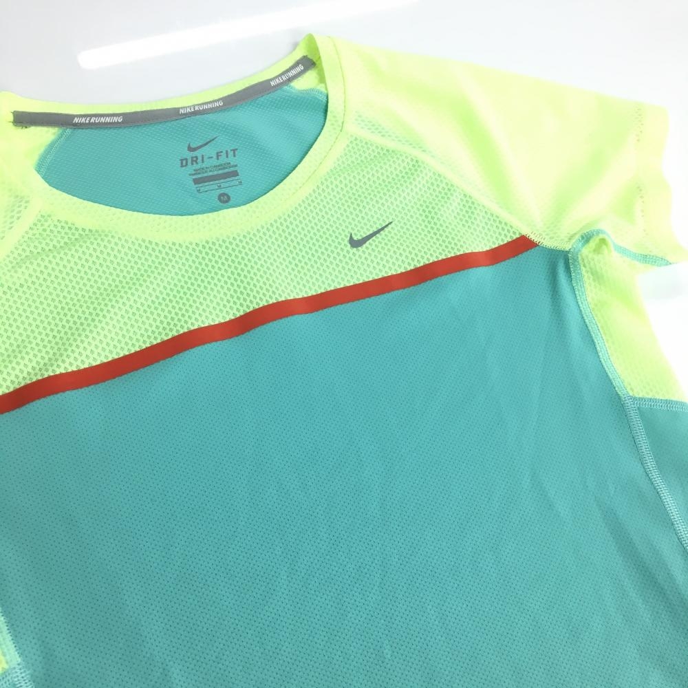 【超美品】ナイキ Tシャツ ブルーグリーン×イエロー メッシュ調生地 ストレッチ DRY-FIT レディース M ゴルフウェア NIKE