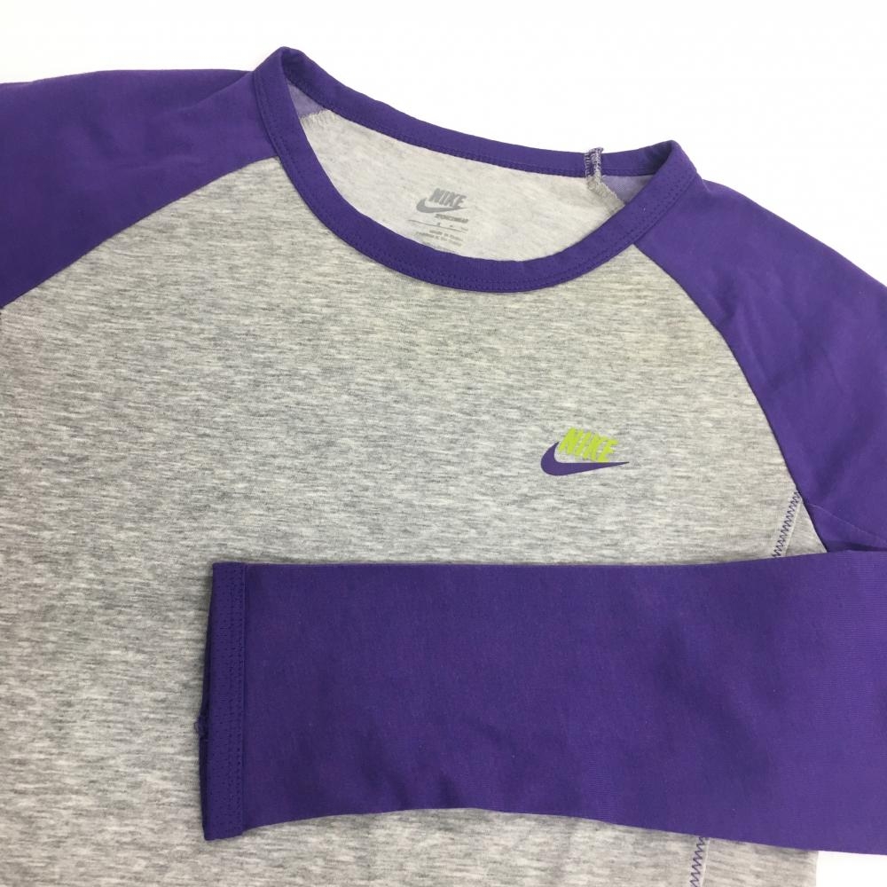 【超美品】ナイキ 長袖Tシャツ グレー×パープル ストレッチ サムホール レディース SP ゴルフウェア NIKE