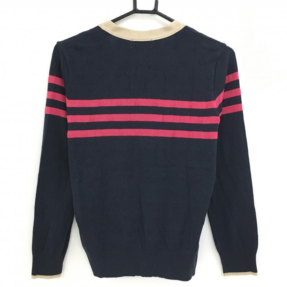 【美品】マンシングウェア ニットカーディガン 黒×ベージュ 胸・袖ライン レディース M ゴルフウェア Munsingwear