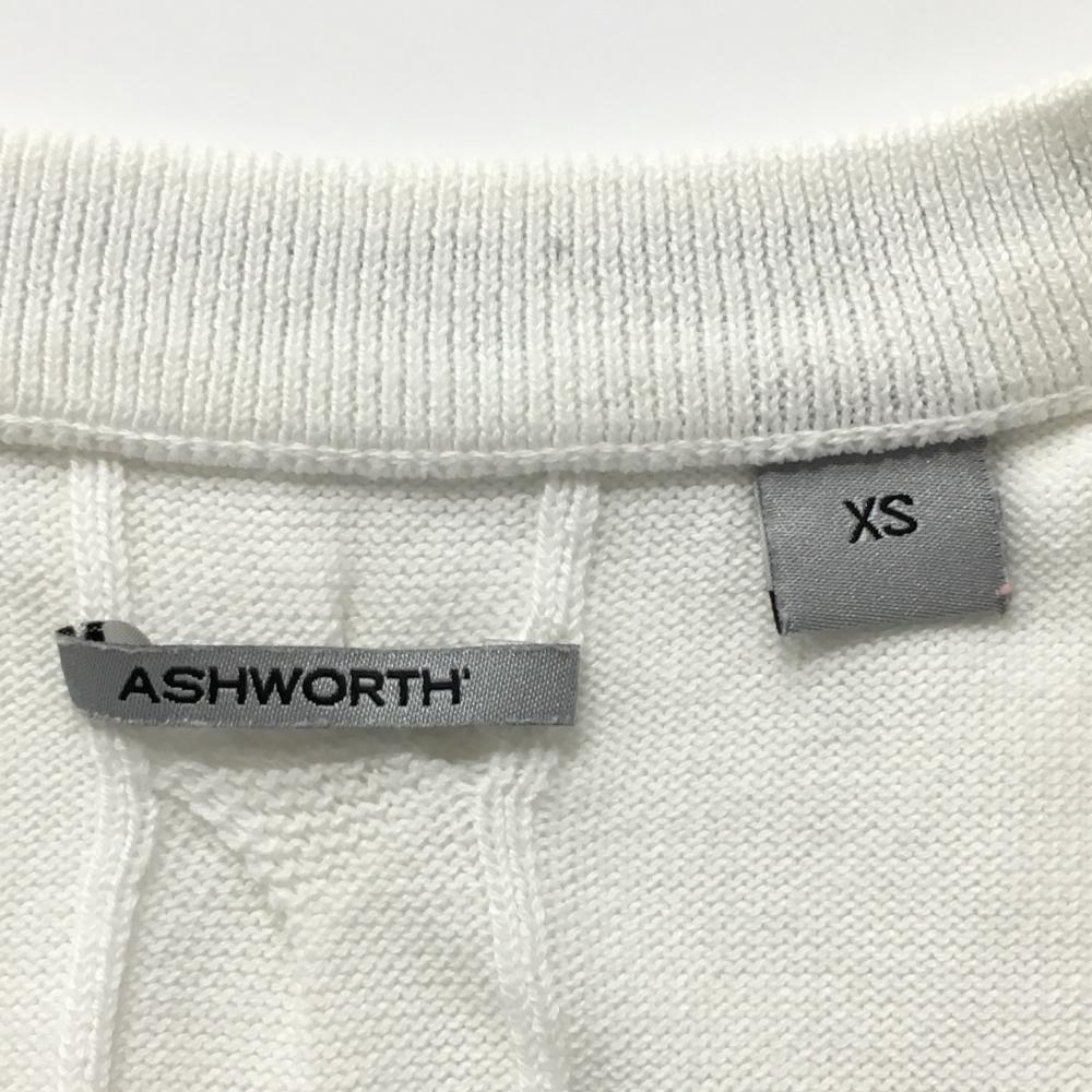 アシュワース セーター 白×ライトブルー Vネック コットン100% レディース XS ゴルフウェア ASHWORTH