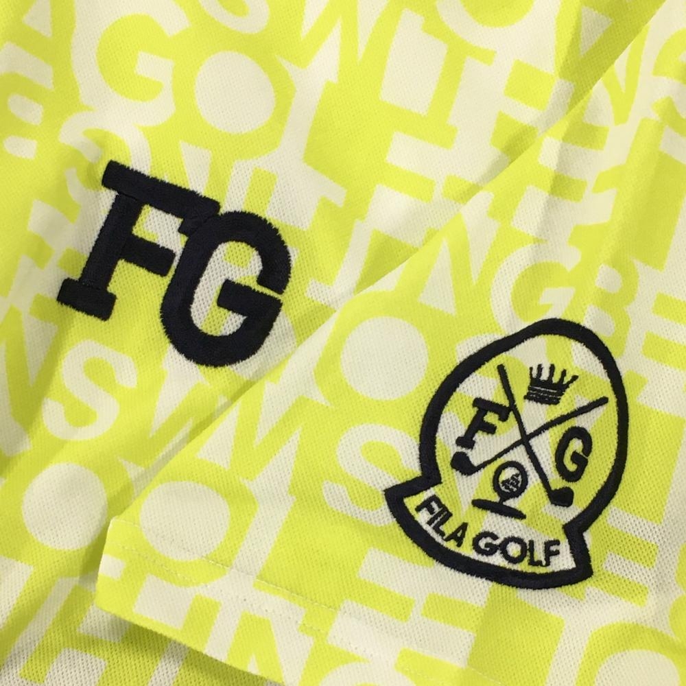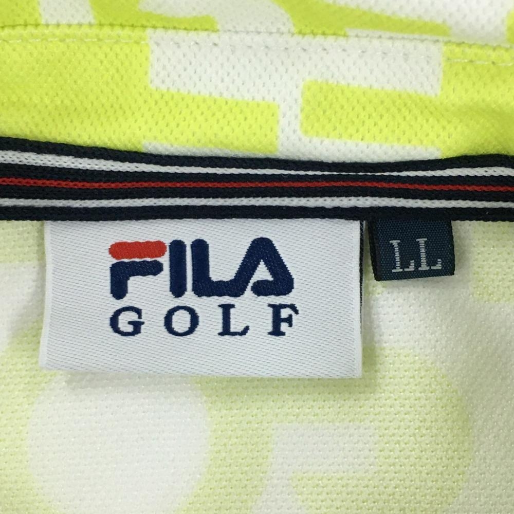 【超美品】フィラゴルフ 半袖ポロシャツ 白×ライトグリーン 英字柄 刺しゅう メンズ LL ゴルフウェア FILA GOLF