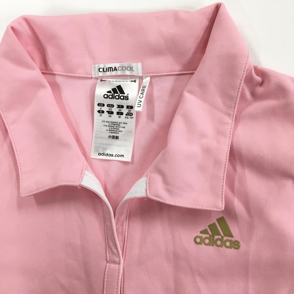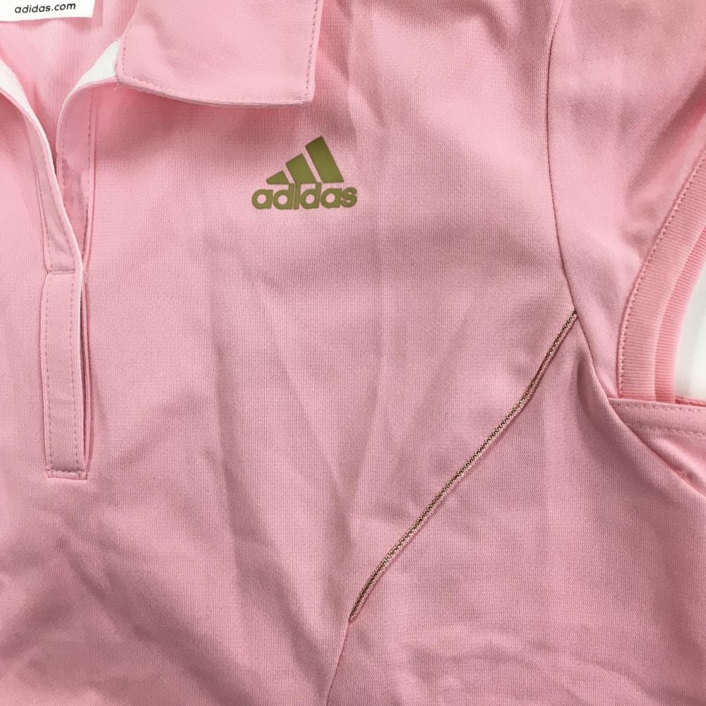 【超美品】アディダス 半袖スキッパーシャツ ピンク×ゴールド 背面メッシュ生地 CLIMACOOL レディース M ゴルフウェア adidas