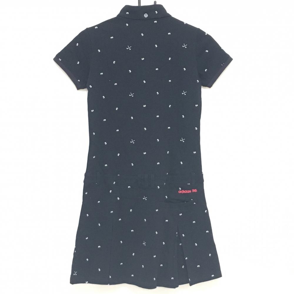【超美品】アディダス 半袖ポロワンピース ダークネイビー×白 数字総柄 レディース XS/XP ゴルフウェア adidas