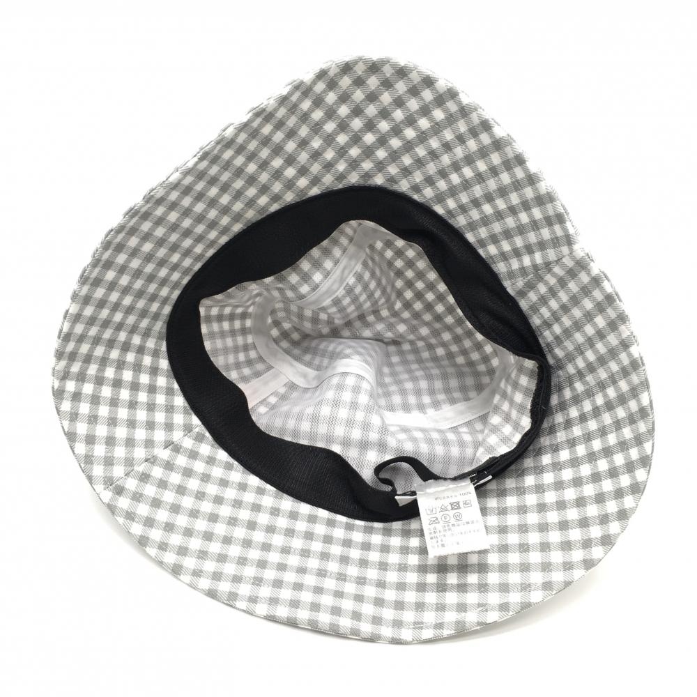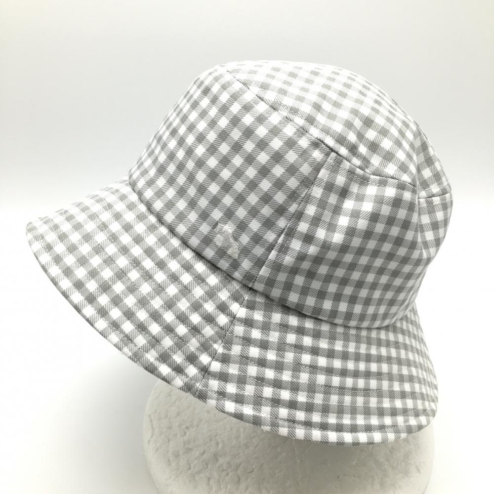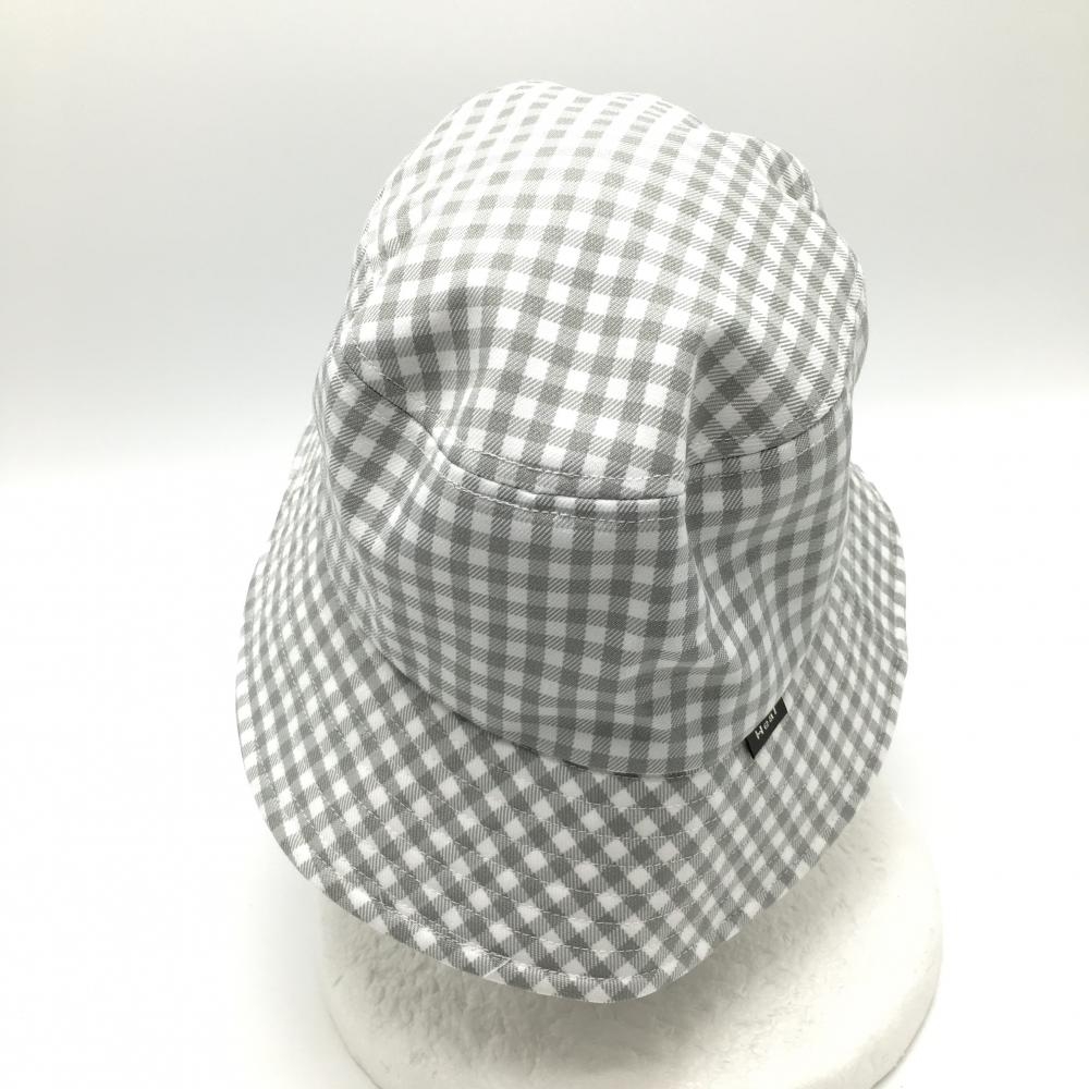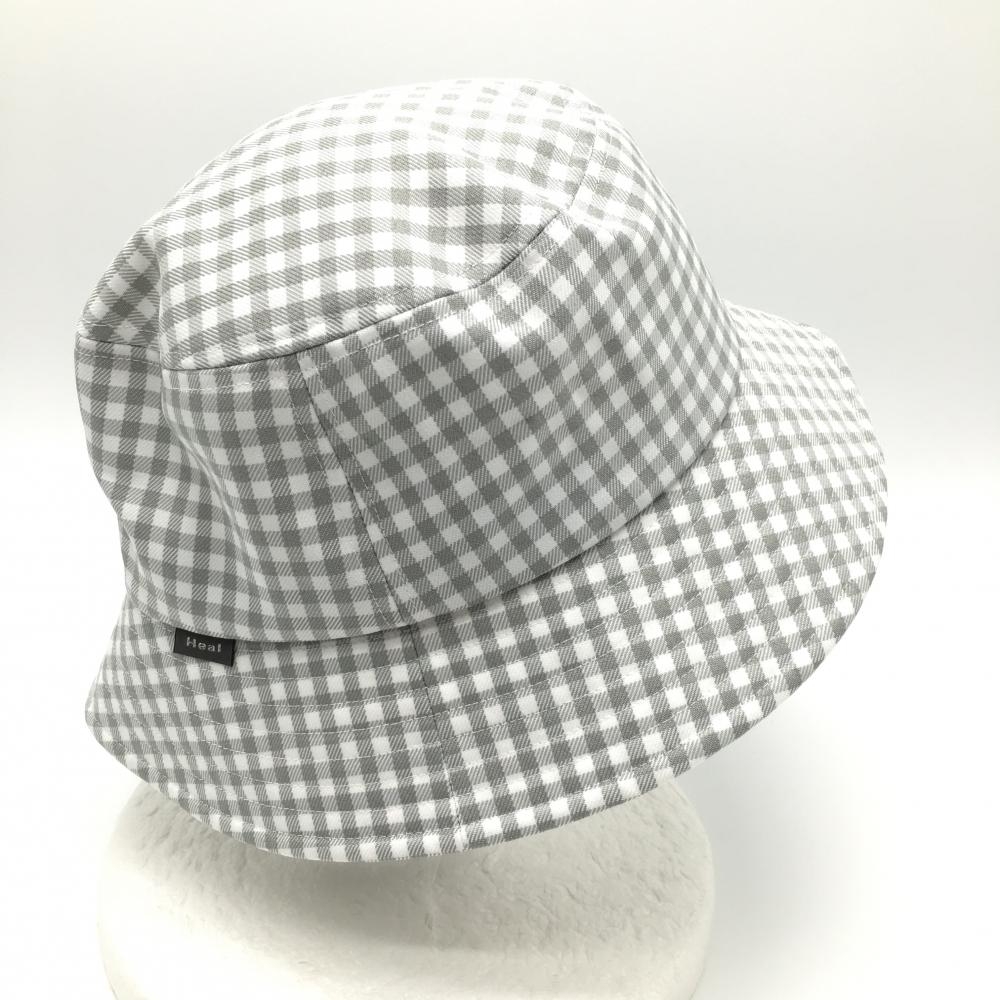 【超美品】ヒールクリーク バケットハット 白×グレー チェック 40 ゴルフウェア Heal Creek