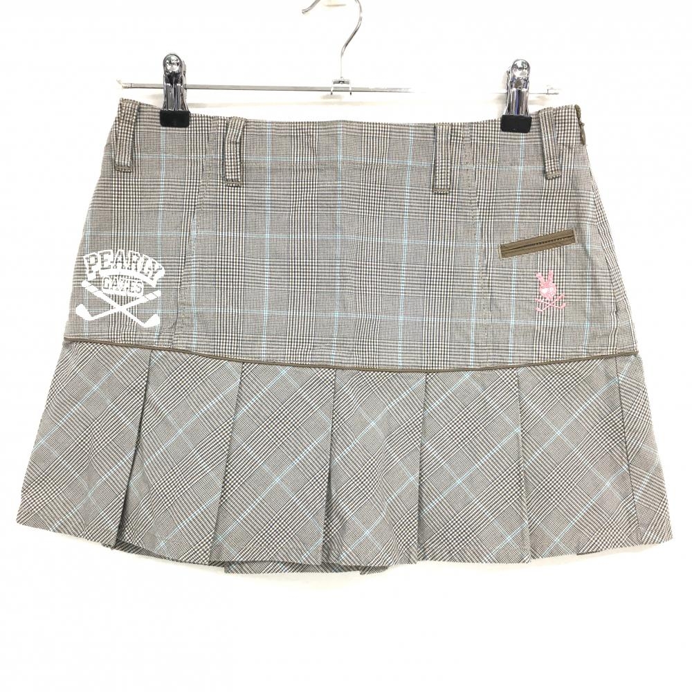 【超美品】パーリーゲイツ スカート ブラウン×ライトブルー×ネイビー グレンチェック レディース 1(M) ゴルフウェア PEARLY GATES
