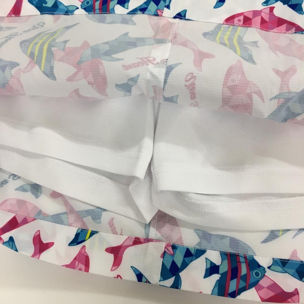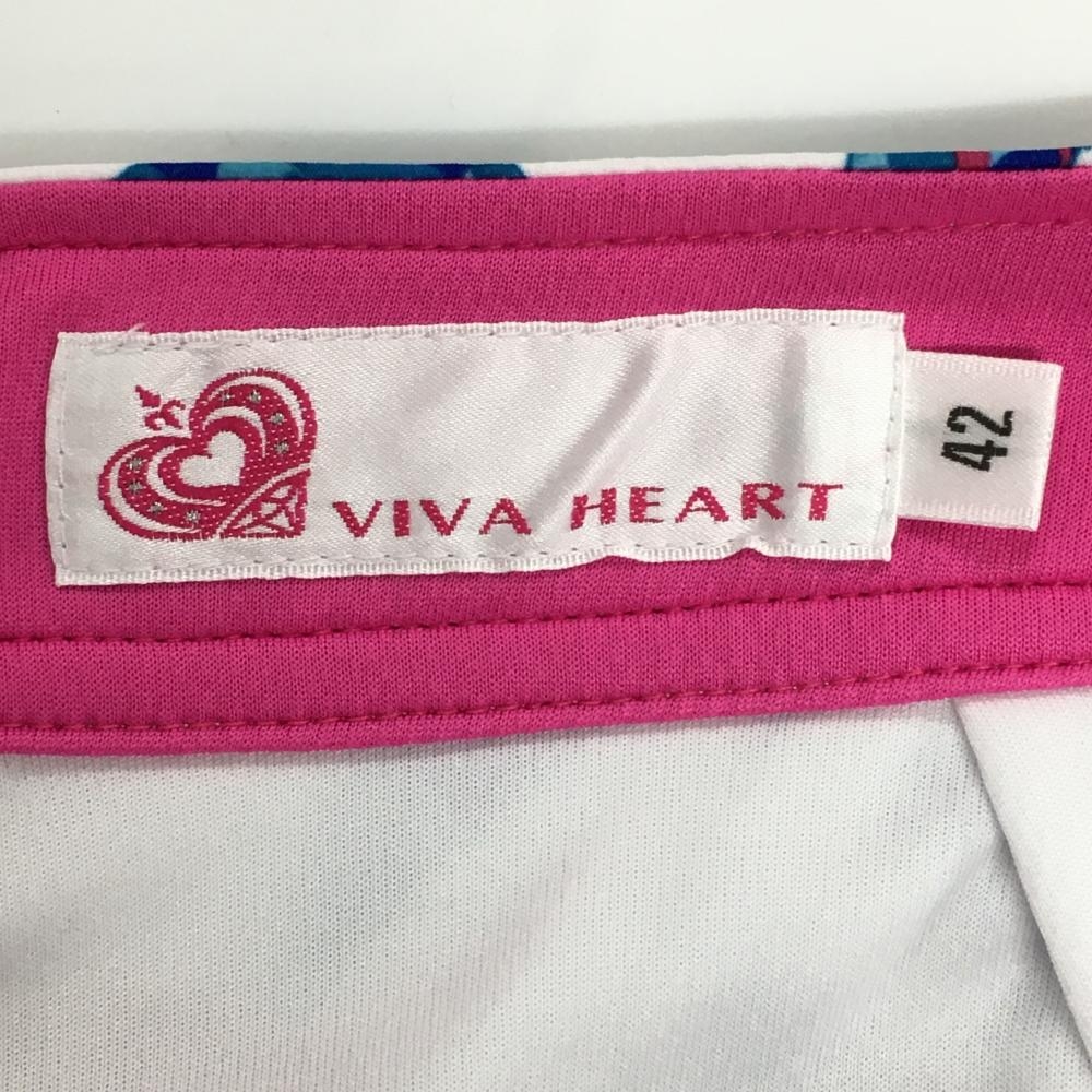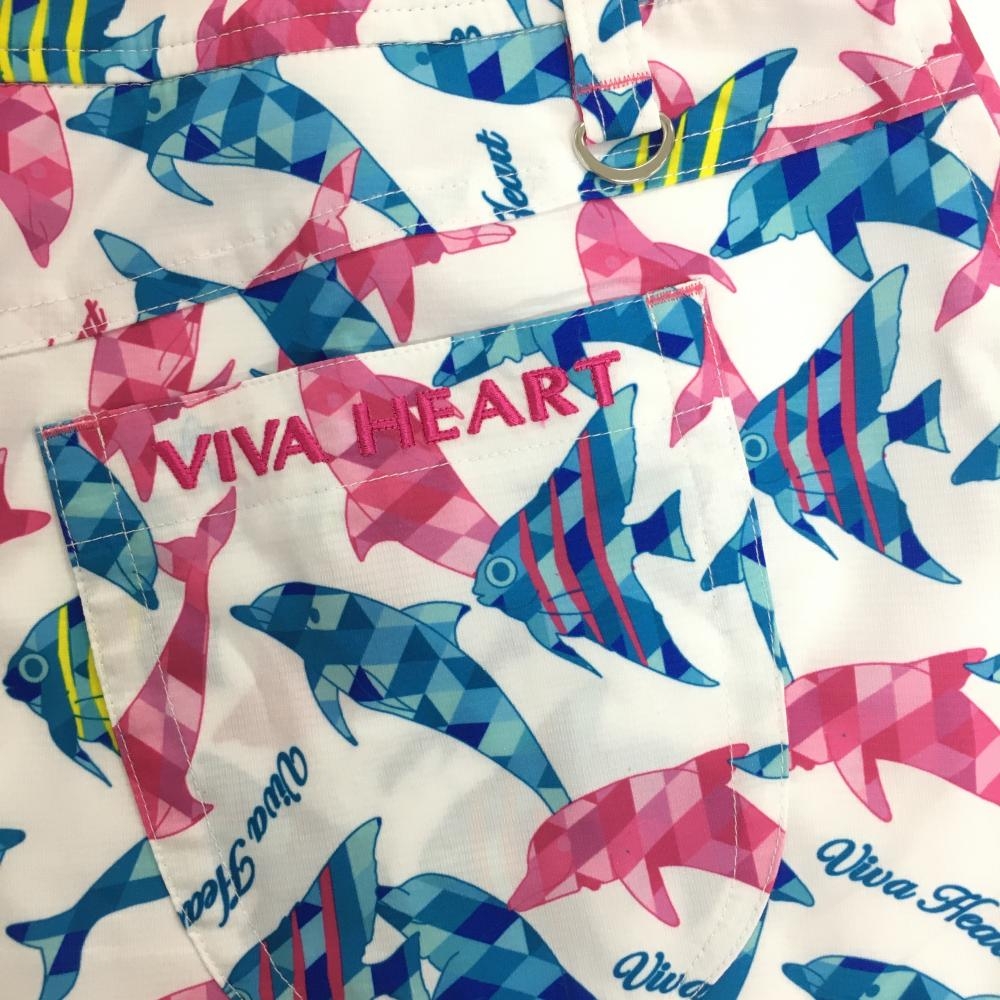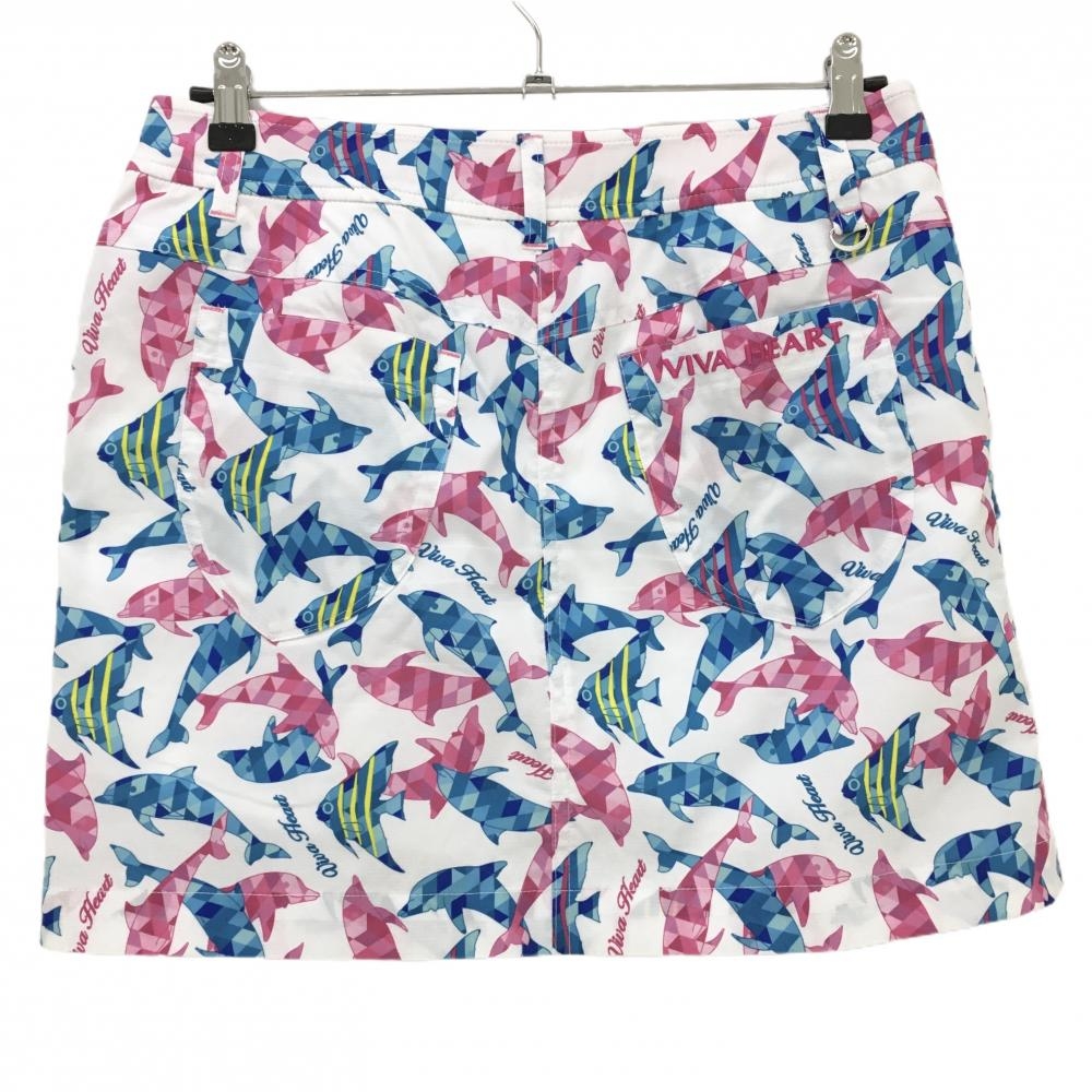 【超美品】ビバハート スカート 白×ピンク 魚柄 内側インナーパンツ レディース 42(L) ゴルフウェア VIVA HEART