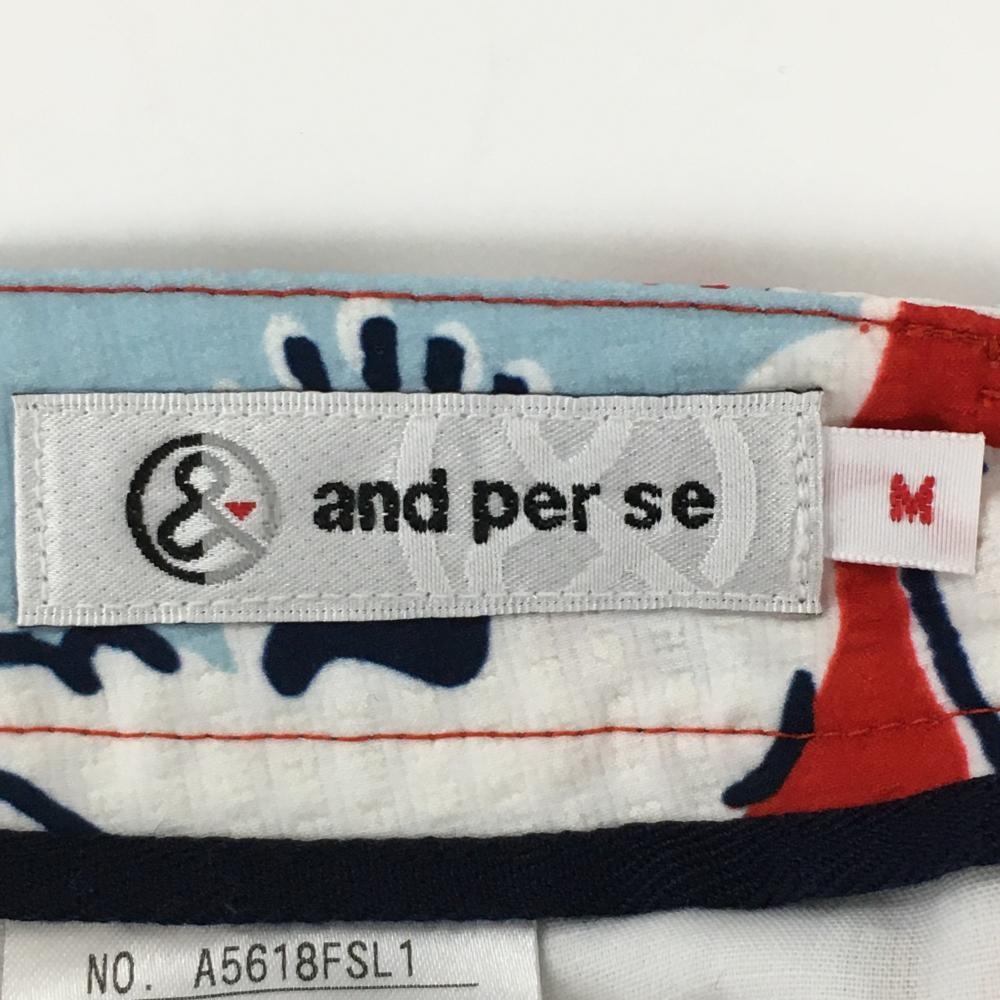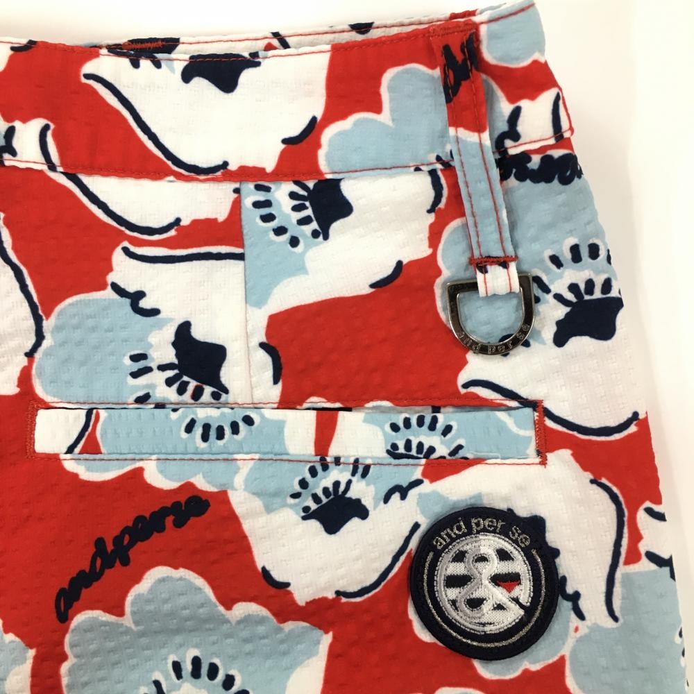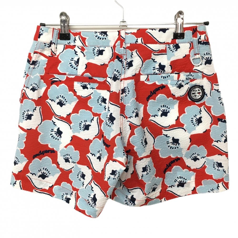 【超美品】アンパスィ ショートパンツ レッド×ライトブルー 花柄 サッカー生地 レディース M ゴルフウェア and per se