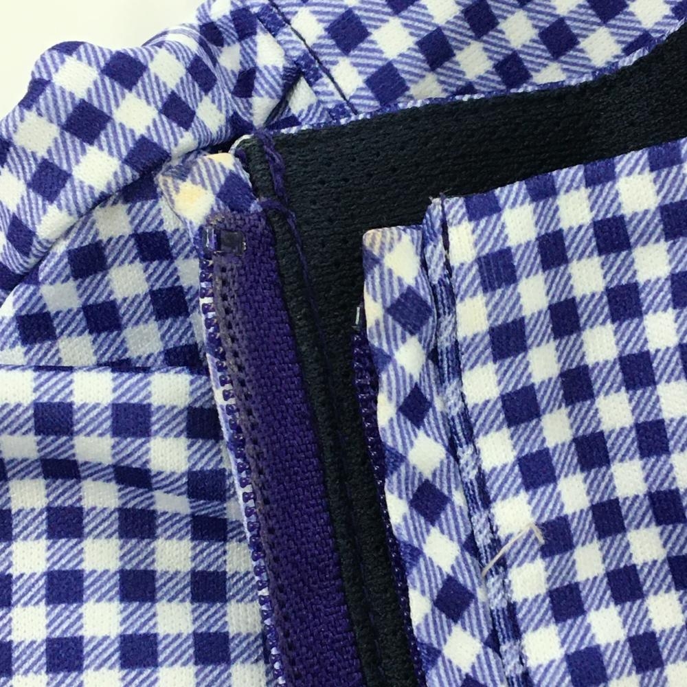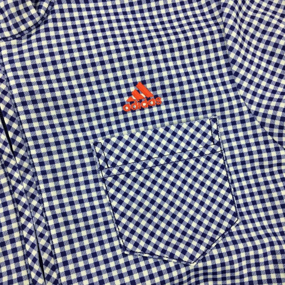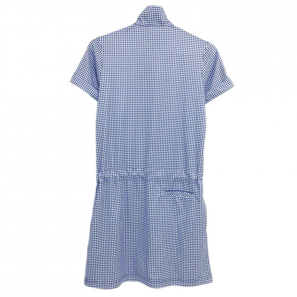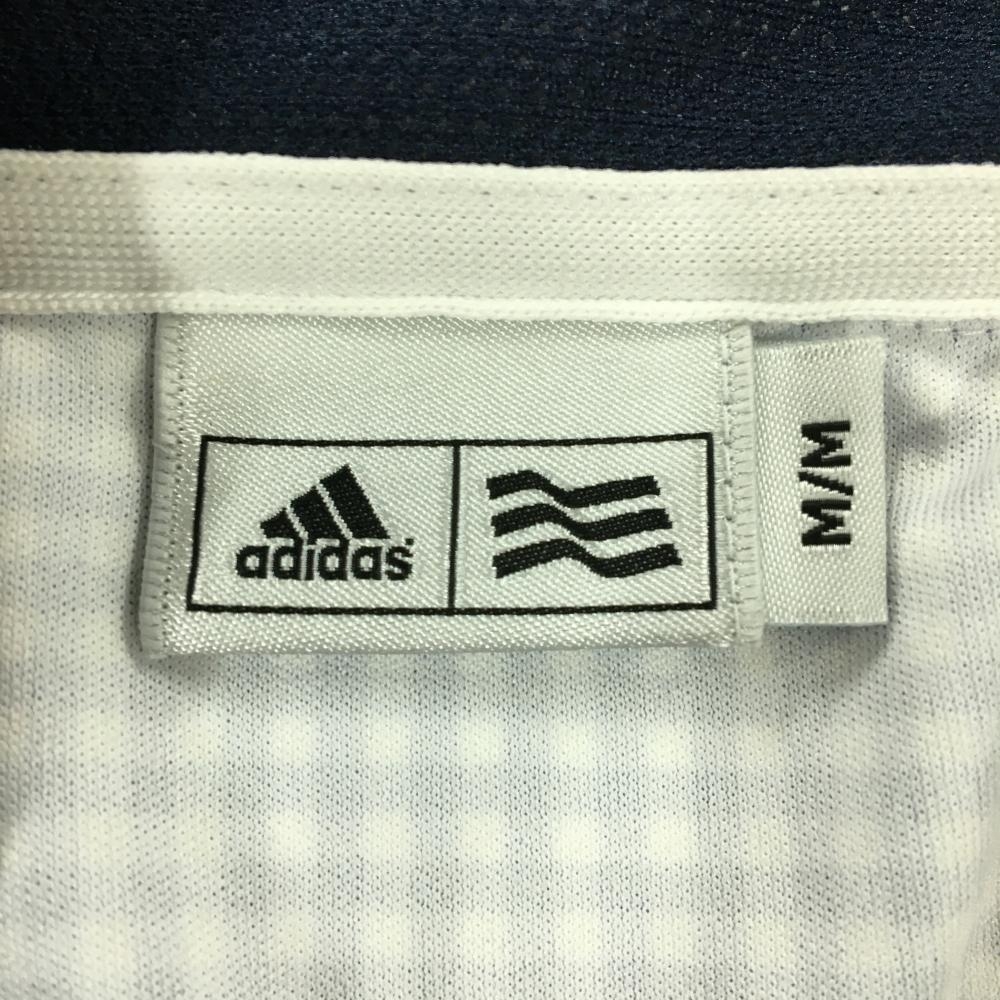 【美品】アディダス 半袖ハイネックワンピース 白×ネイビー ギンガムチェック ハーフジップ レディース M/M ゴルフウェア adidas