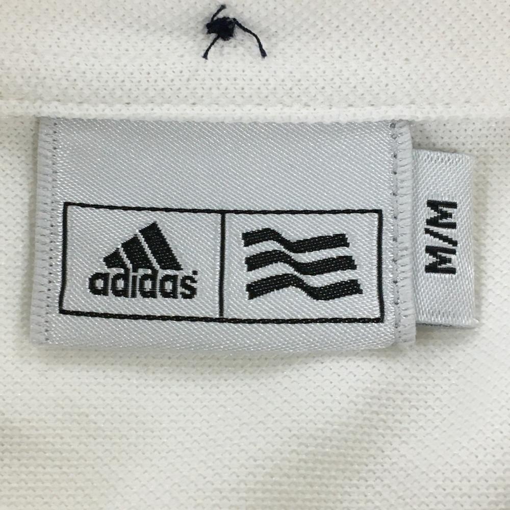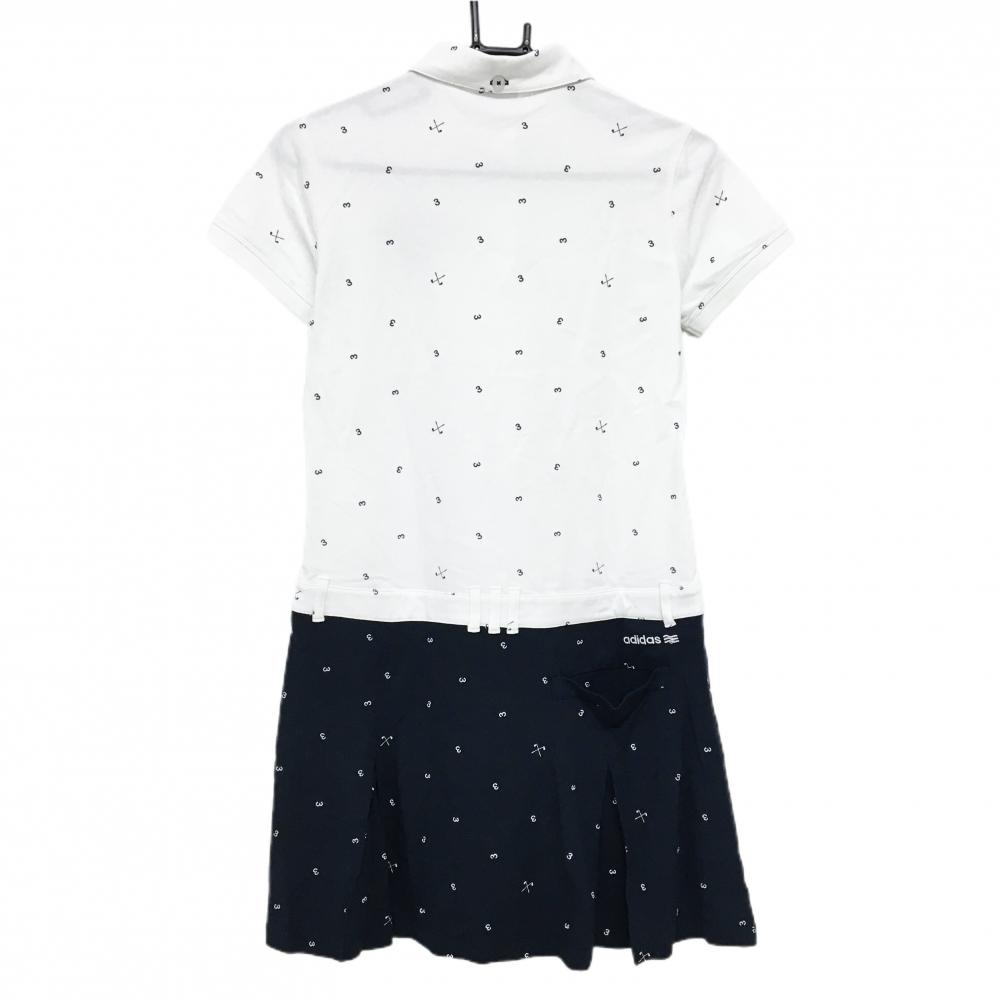 アディダス 半袖ポロワンピース 白×ネイビー 総柄 ボタンダウン レディース M/M ゴルフウェア adidas