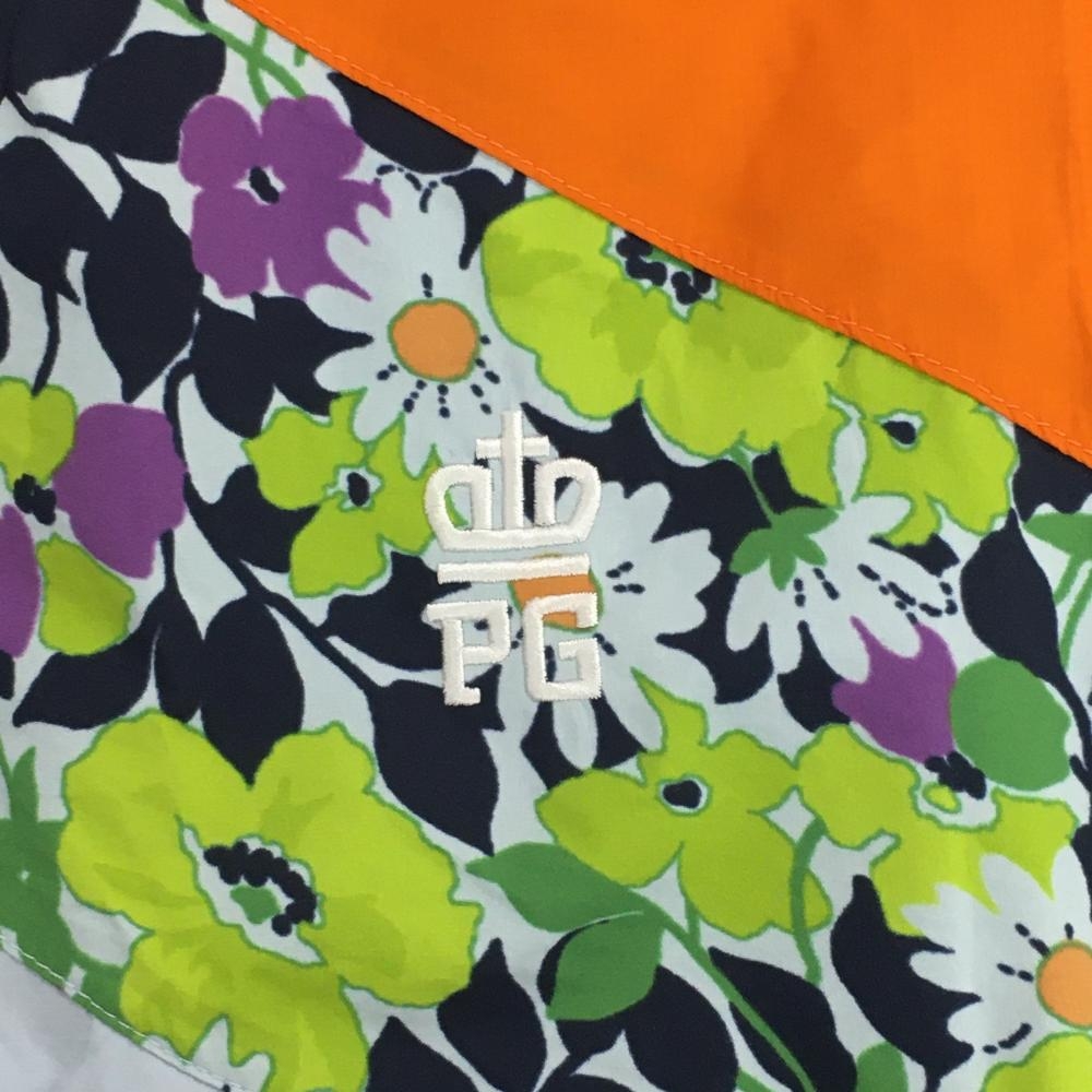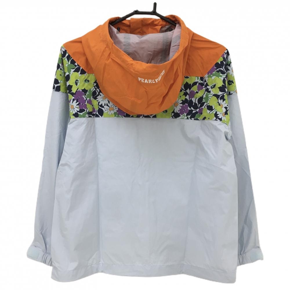 【超美品】パーリーゲイツ ナイロンパーカー ライトブルー×オレンジ 一部花柄 ナイロン100% レディース 0(S) ゴルフウェア PEARLY GATES
