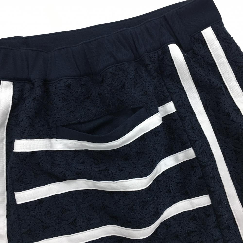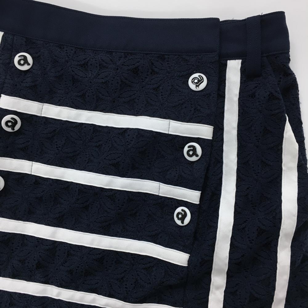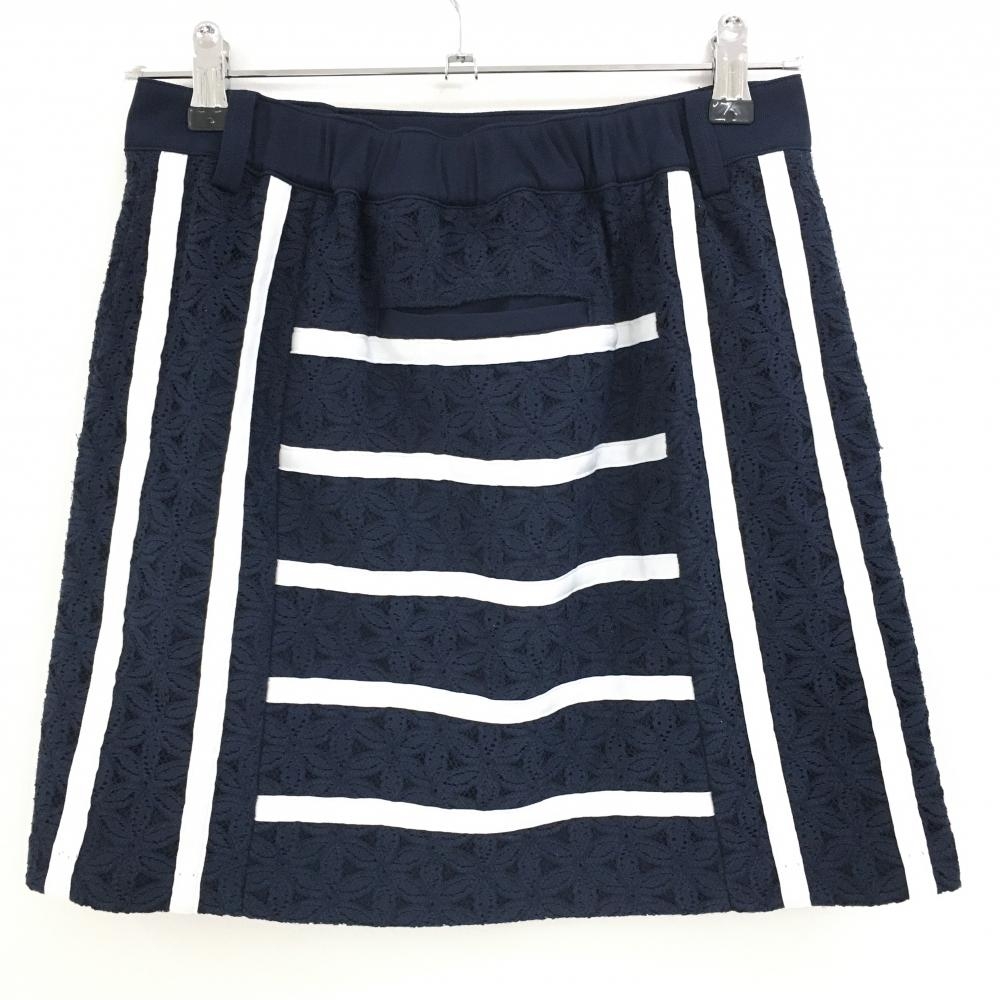【美品】アルチビオ スカート ネイビー×白 花柄レース ボーダー ストライプ レディース 38(M) ゴルフウェア archivio