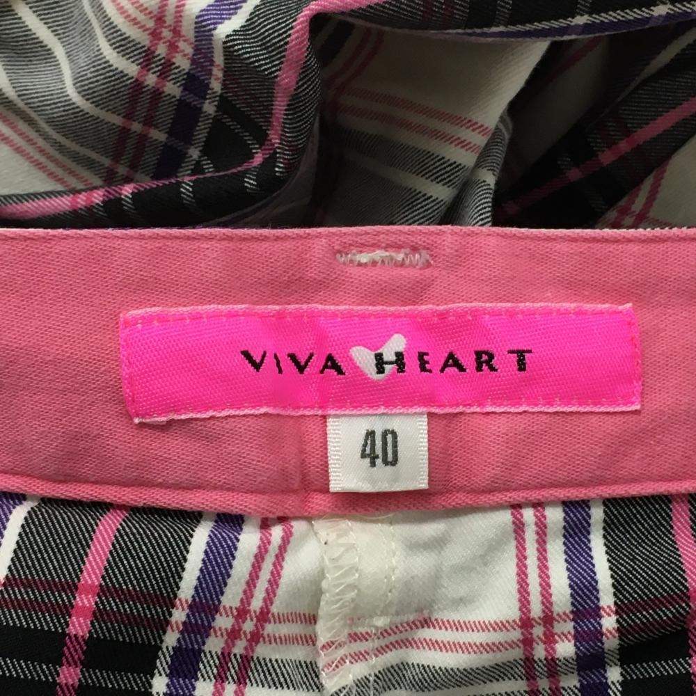 ビバハート パンツ 白×黒×ピンク チェック レディース 40(M) ゴルフウェア VIVA HEART