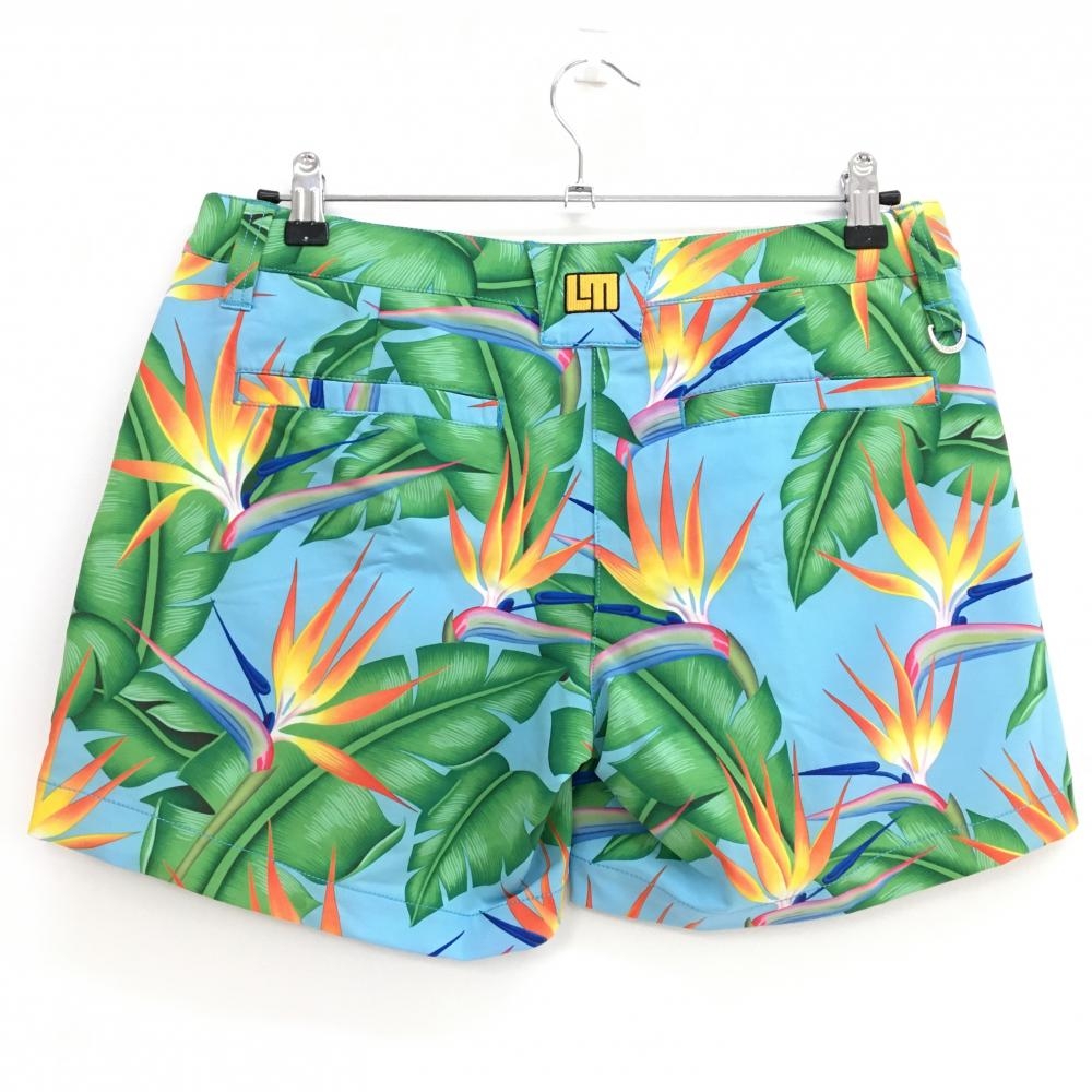 【新品】ラウドマウス ショートパンツ ライトブルー×グリーン リーフ柄 ボラボラブルー レディース LL ゴルフウェア LOUDMOUTH