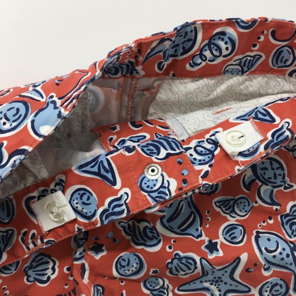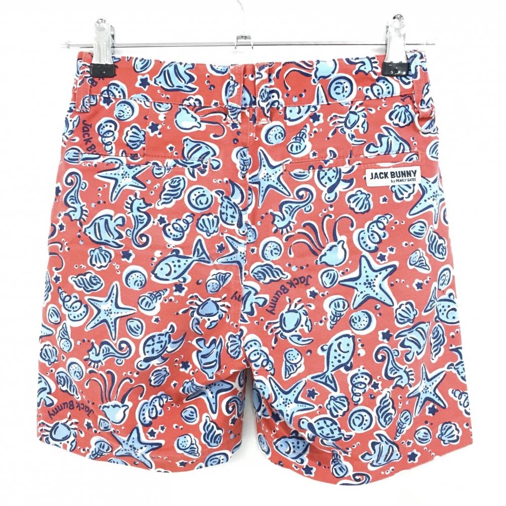 【美品】ジャックバニー ハーフパンツ レッド×ライトブルー 魚 貝柄 ジュニア・キッズ 140 ゴルフウェア Jack Bunny