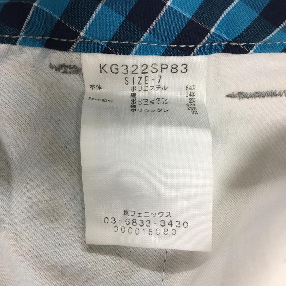 カッパ ショートパンツ グレー×ブルー ポケット口チェック レディース 7 ゴルフウェア Kappa