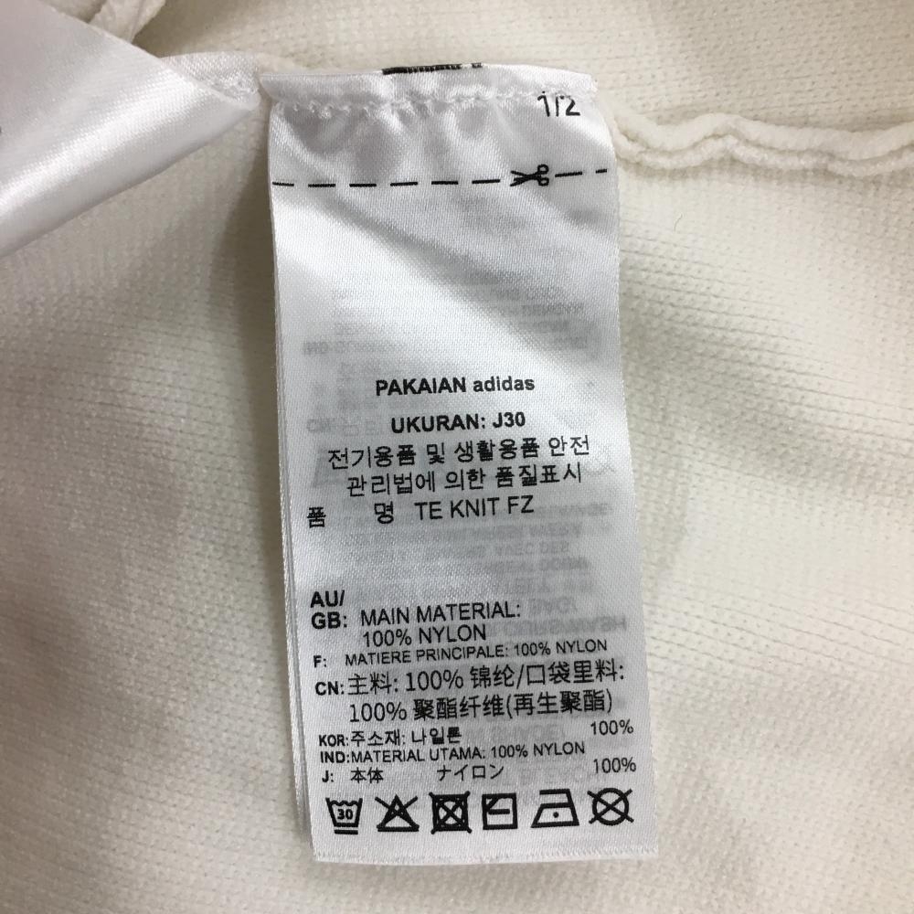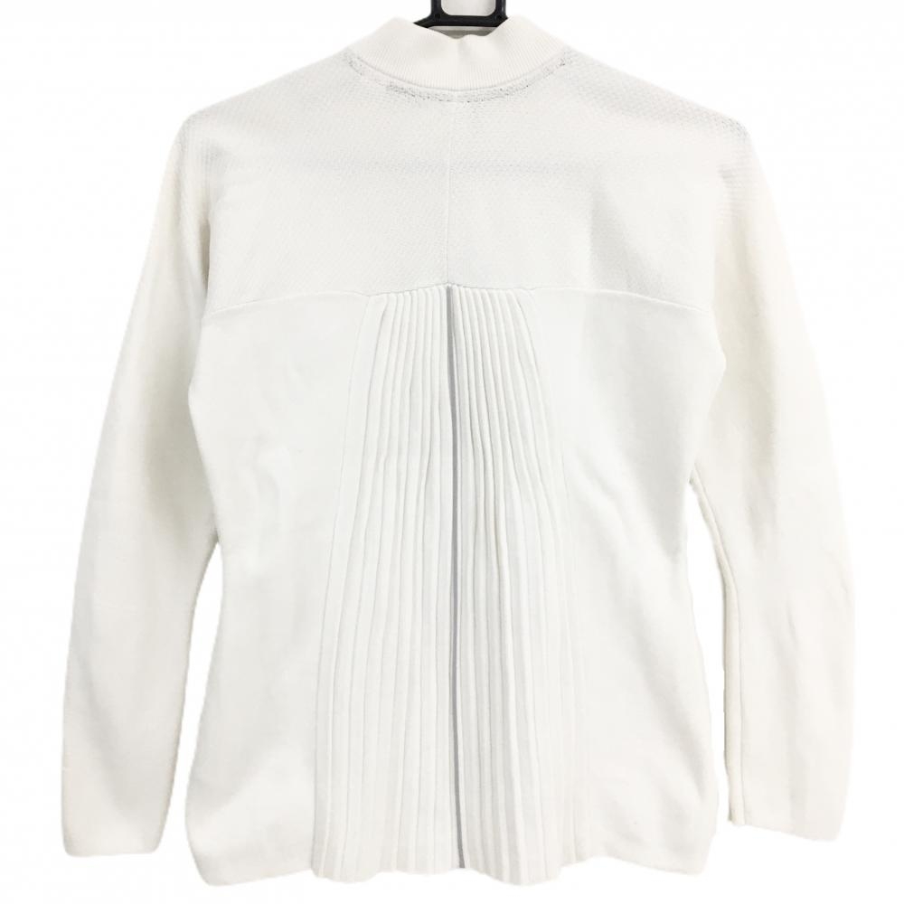 【超美品】アディダス ニットジャケット 白 背面一部プリーツ 袖3ライン レディース S ゴルフウェア adidas