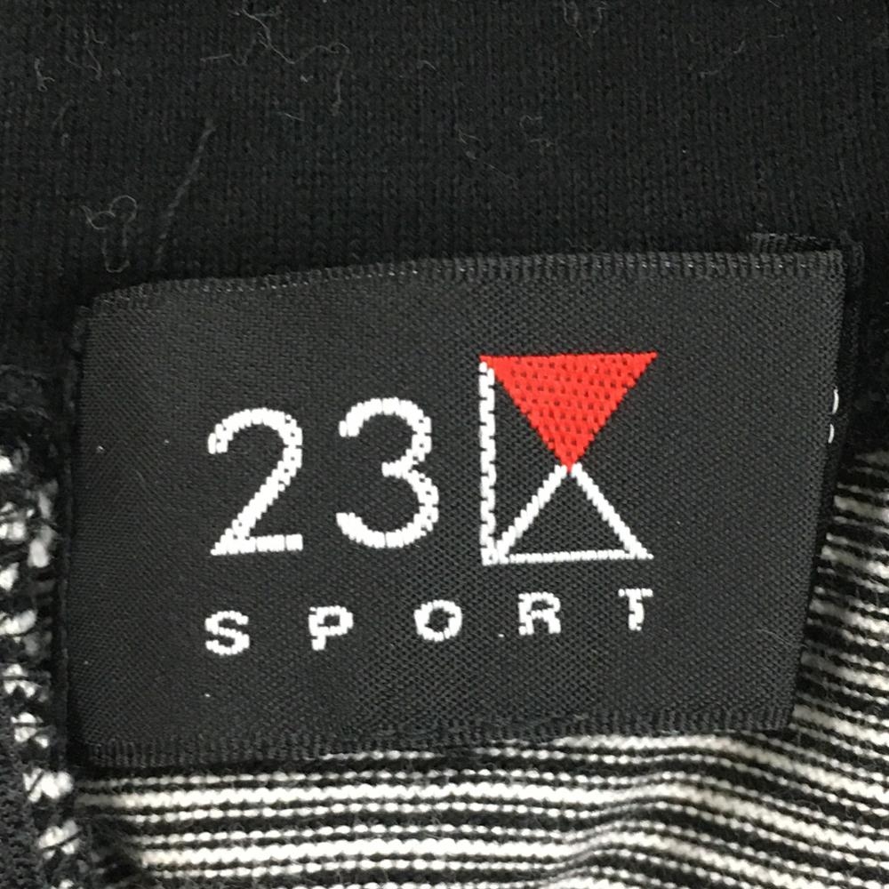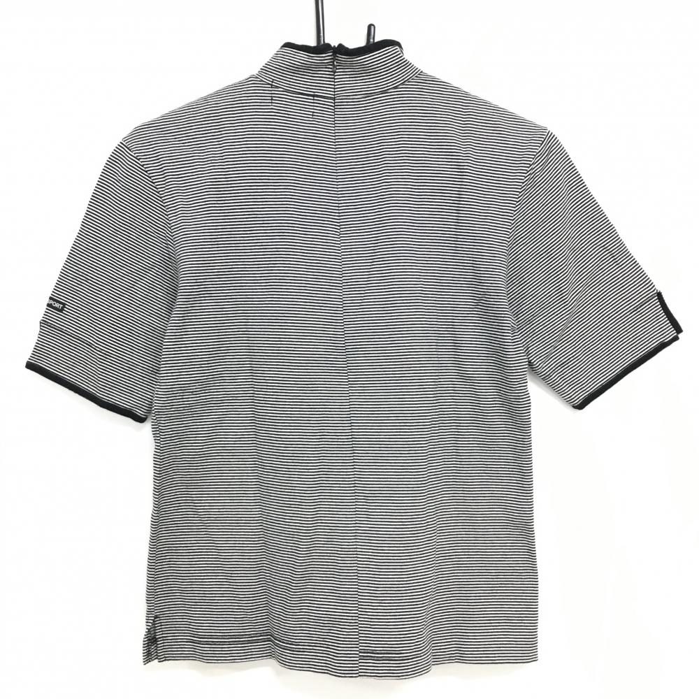 【美品】23区スポーツ 半袖ハイネックシャツ 白×黒 ボーダー 後ろハーフジップ コットン100% レディース M ゴルフウェア 23区