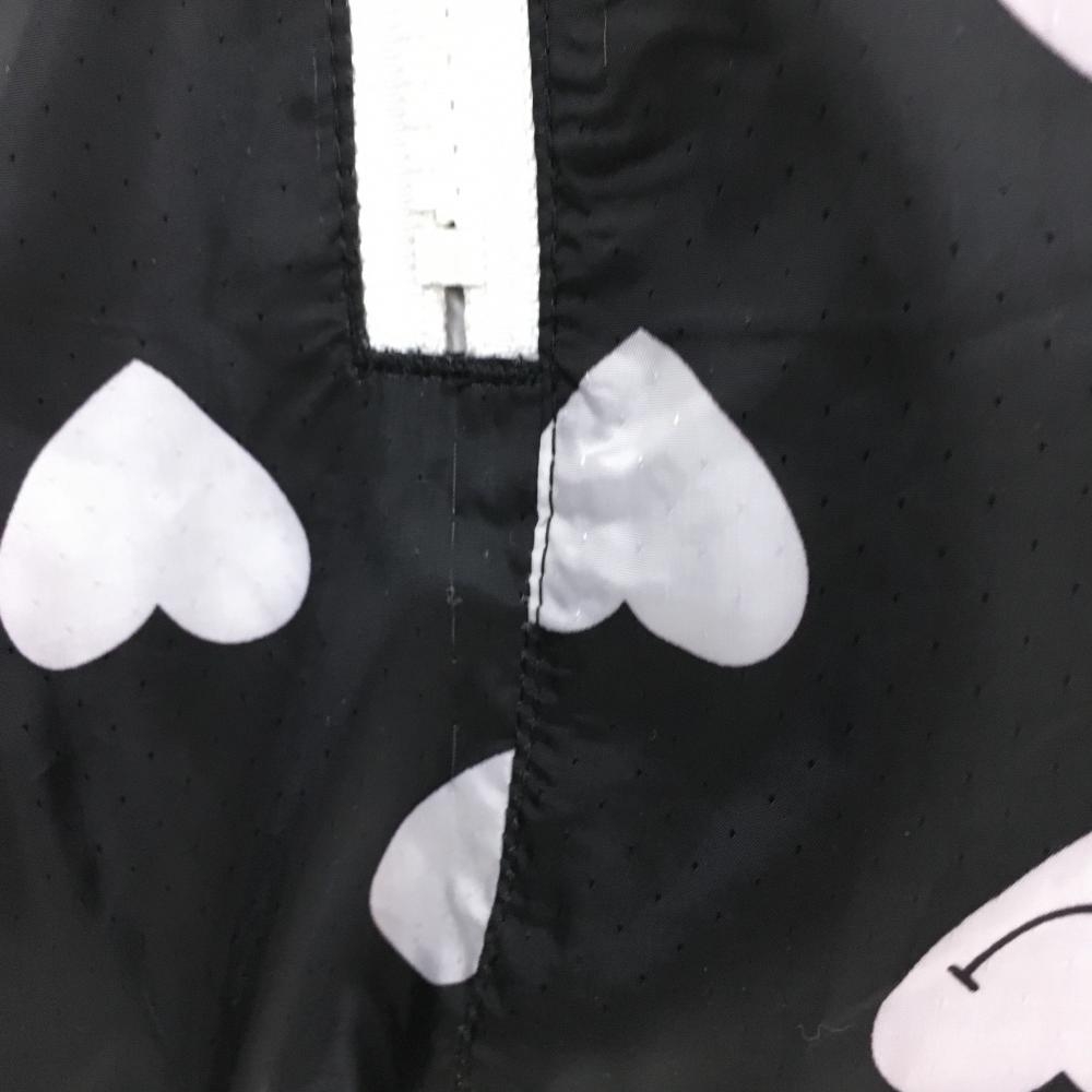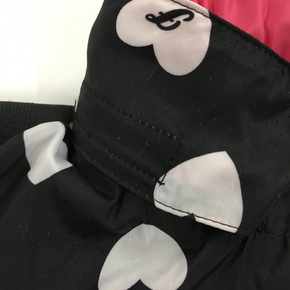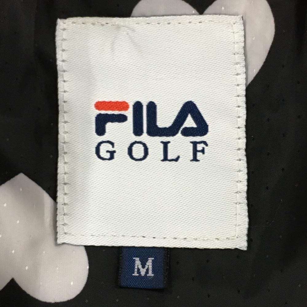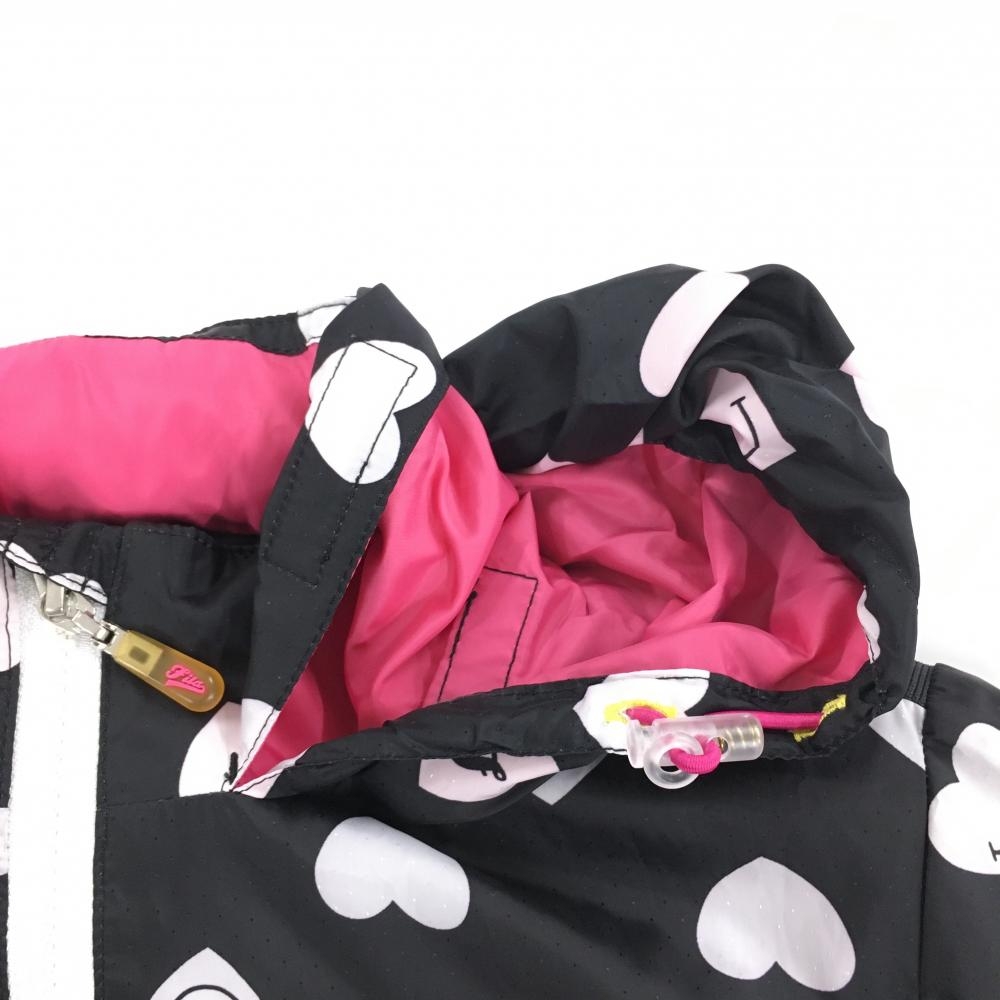 【美品】フィラゴルフ 2WAY半袖ジャケット 黒×白 ハート総柄 ピンドット地模様 フード収納可 レディース M ゴルフウェア FILA GOLF