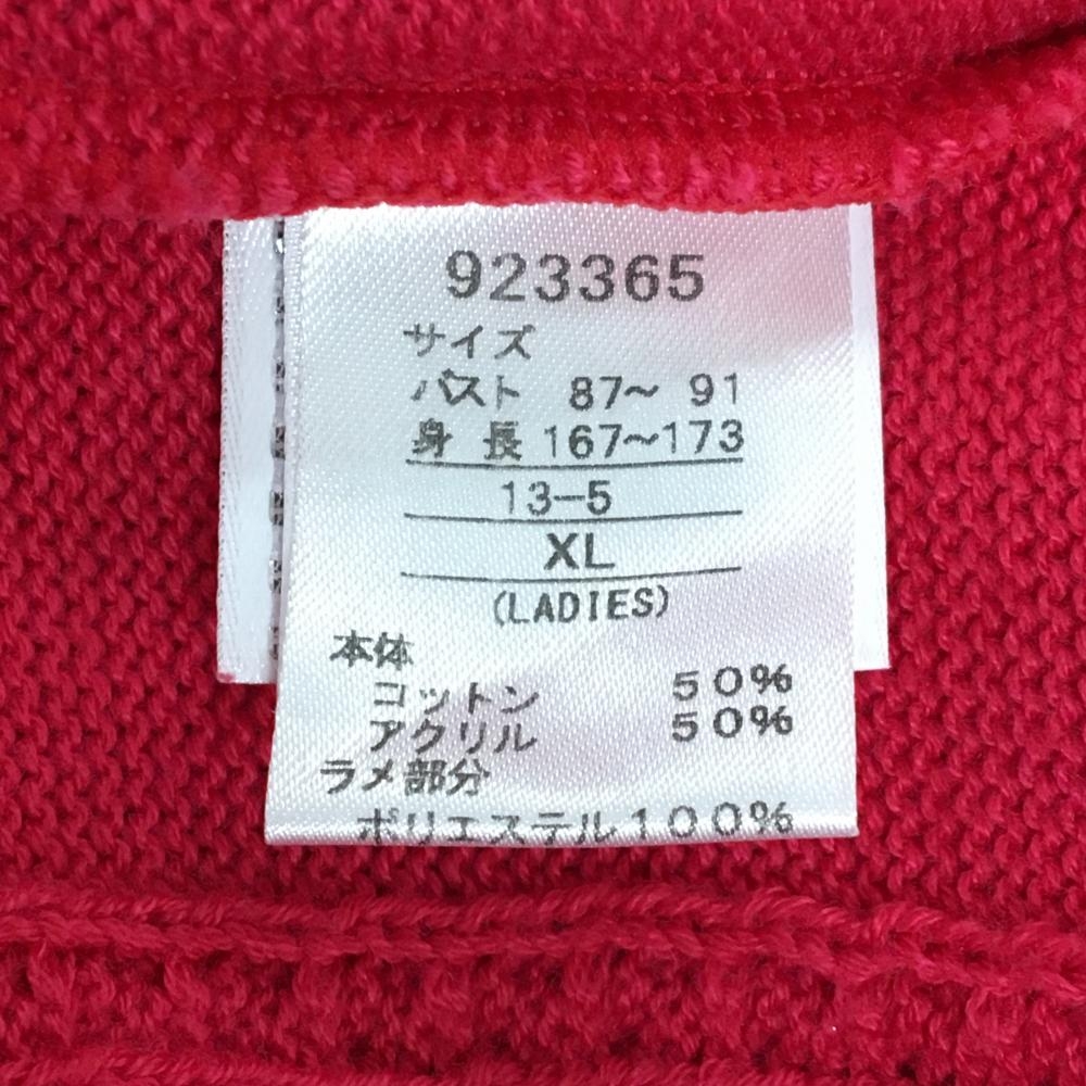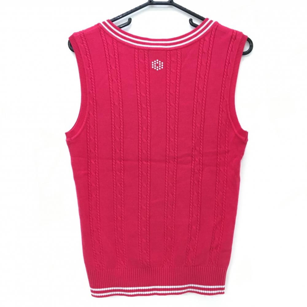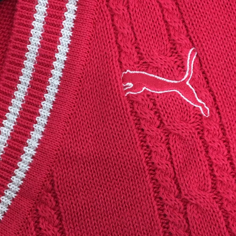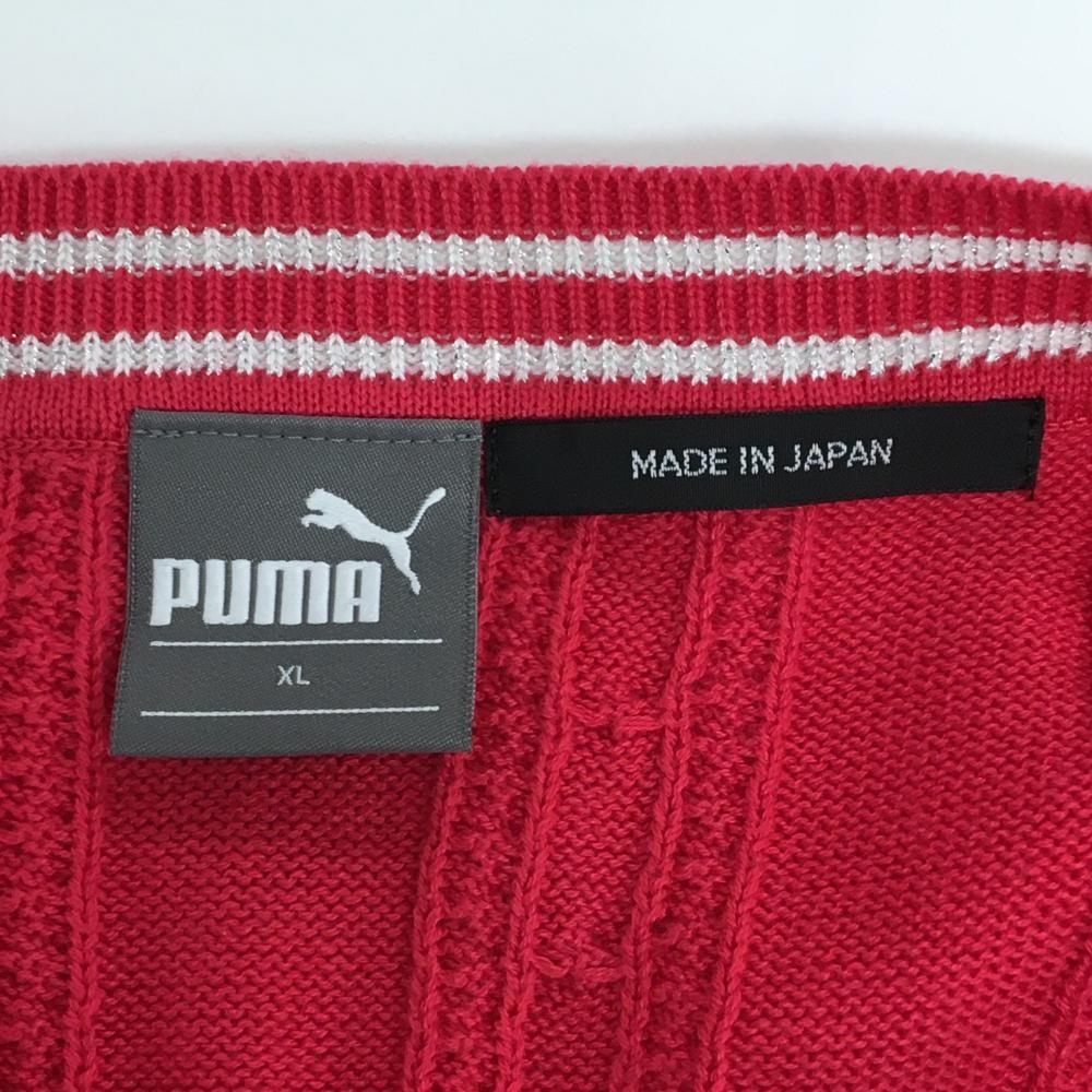 【超美品】プーマ ニットベスト ピンク ケーブル編み アクリル混 Vネック ラメ レディース XL ゴルフウェア PUMA