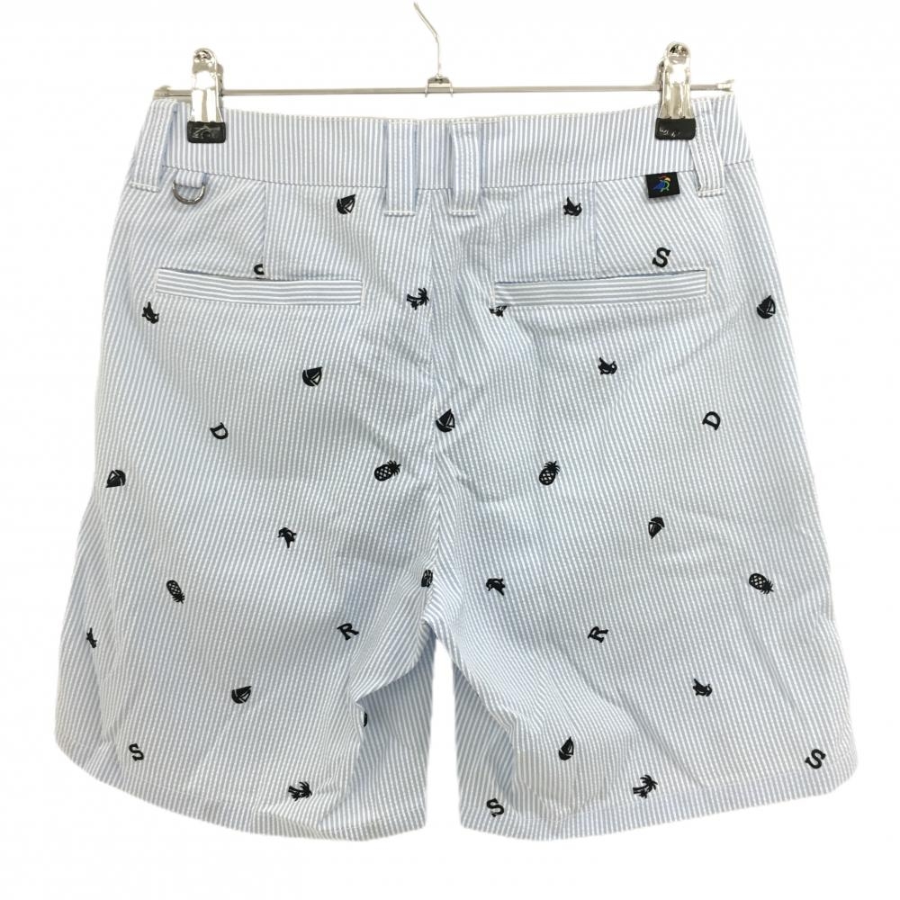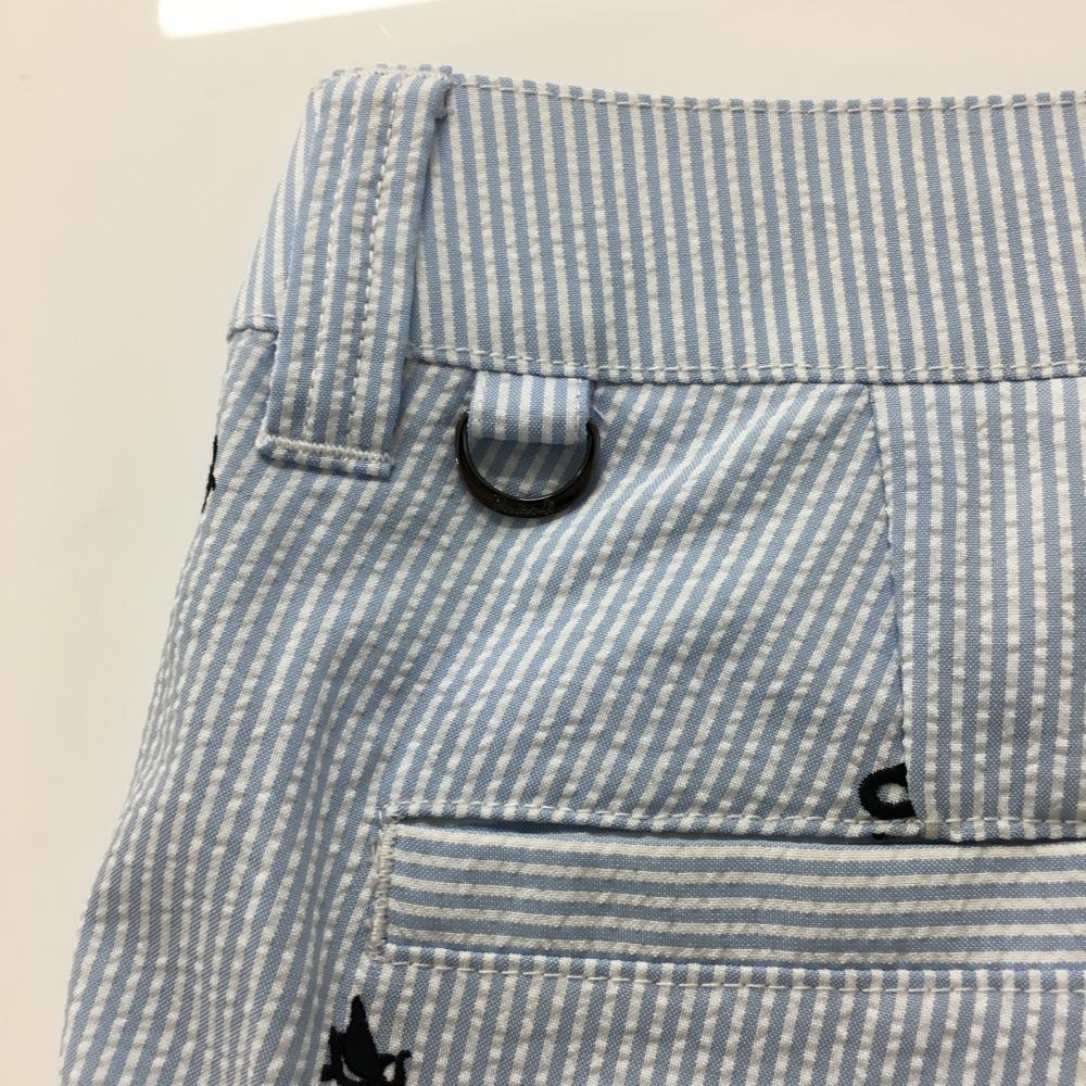 パラディーゾ ハーフパンツ ライトブルー×白 ストライプ サッカー生地 レディース M ゴルフウェア Paradiso