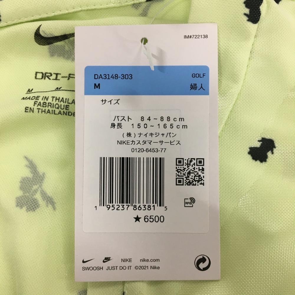 【新品】ナイキ 半袖スキッパーシャツ ライトグリーン×ネイビー 花柄 DRI-FIT レディース M ゴルフウェア NIKE