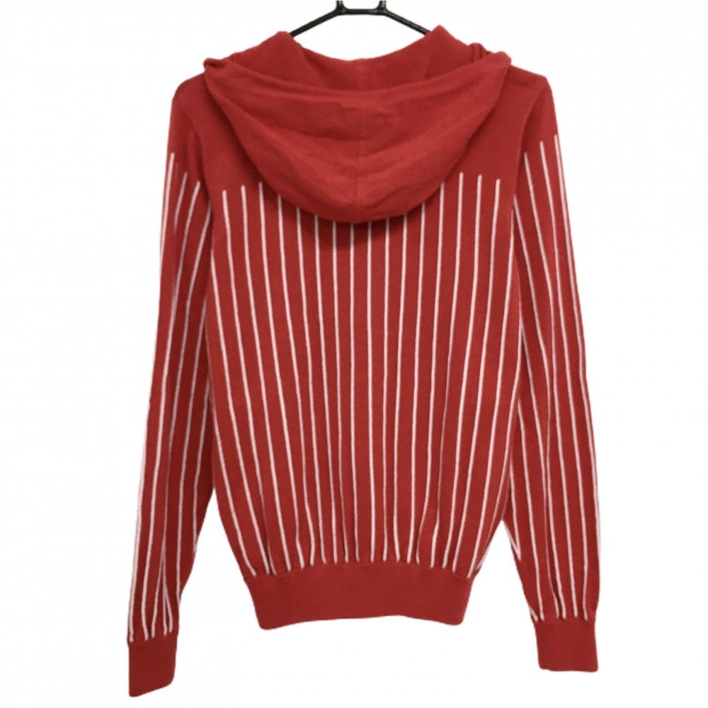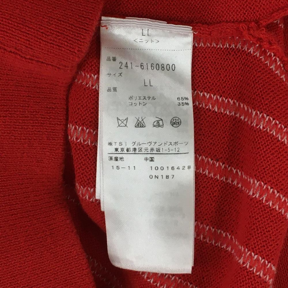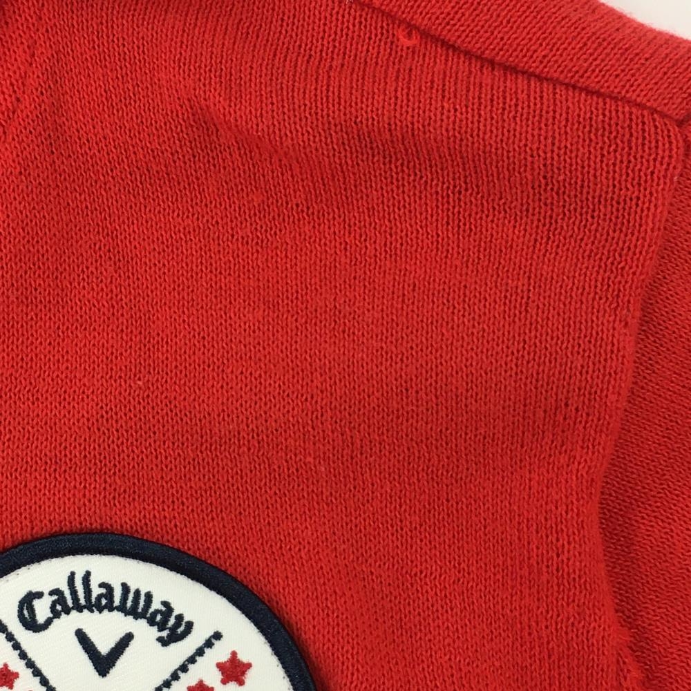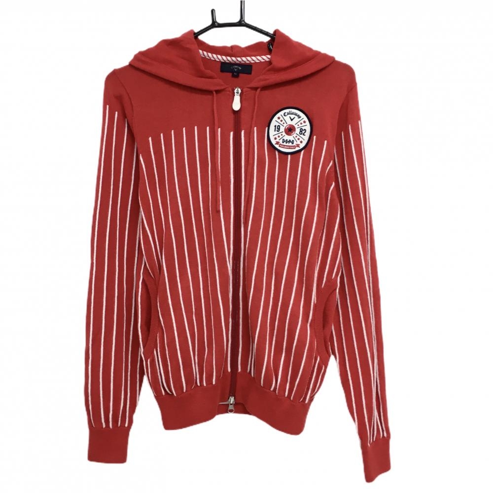 【美品】キャロウェイ ニットパーカー レッド×白 ストライプ ジャケット コットン混 レディース LL ゴルフウェア Callaway