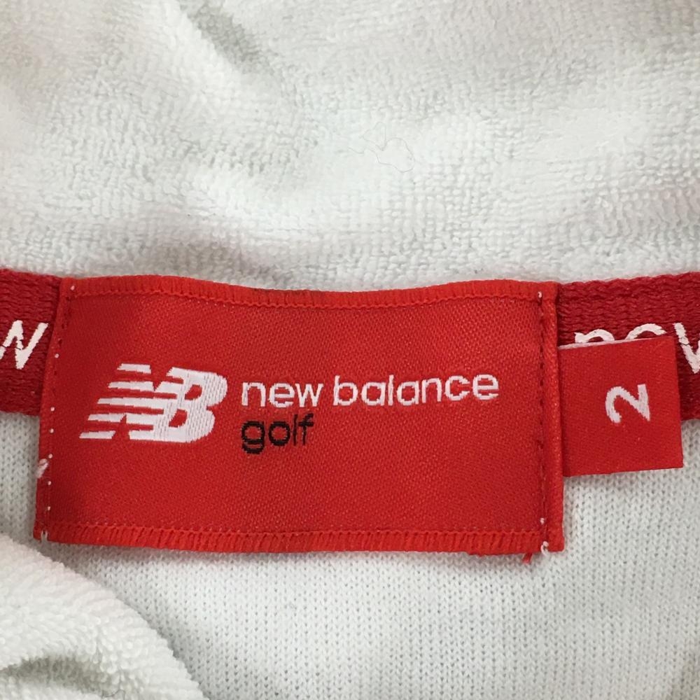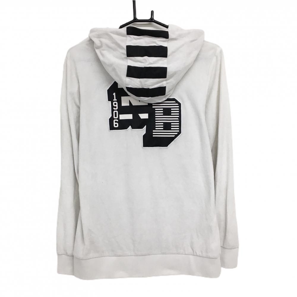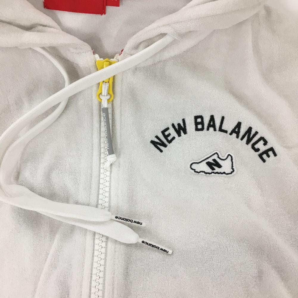 【美品】ニューバランスゴルフ ジップパーカー 白×黒 パイル地 フード一部ボーダー ジャケット レディース 2(L) ゴルフウェア New Balance