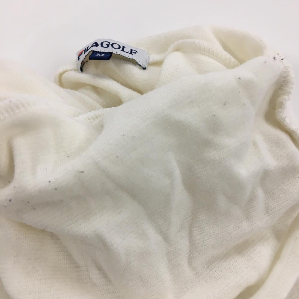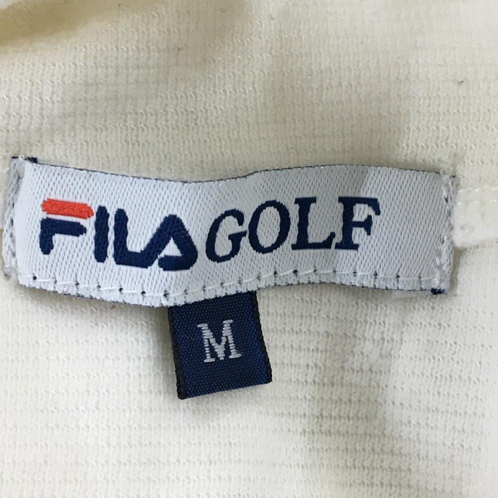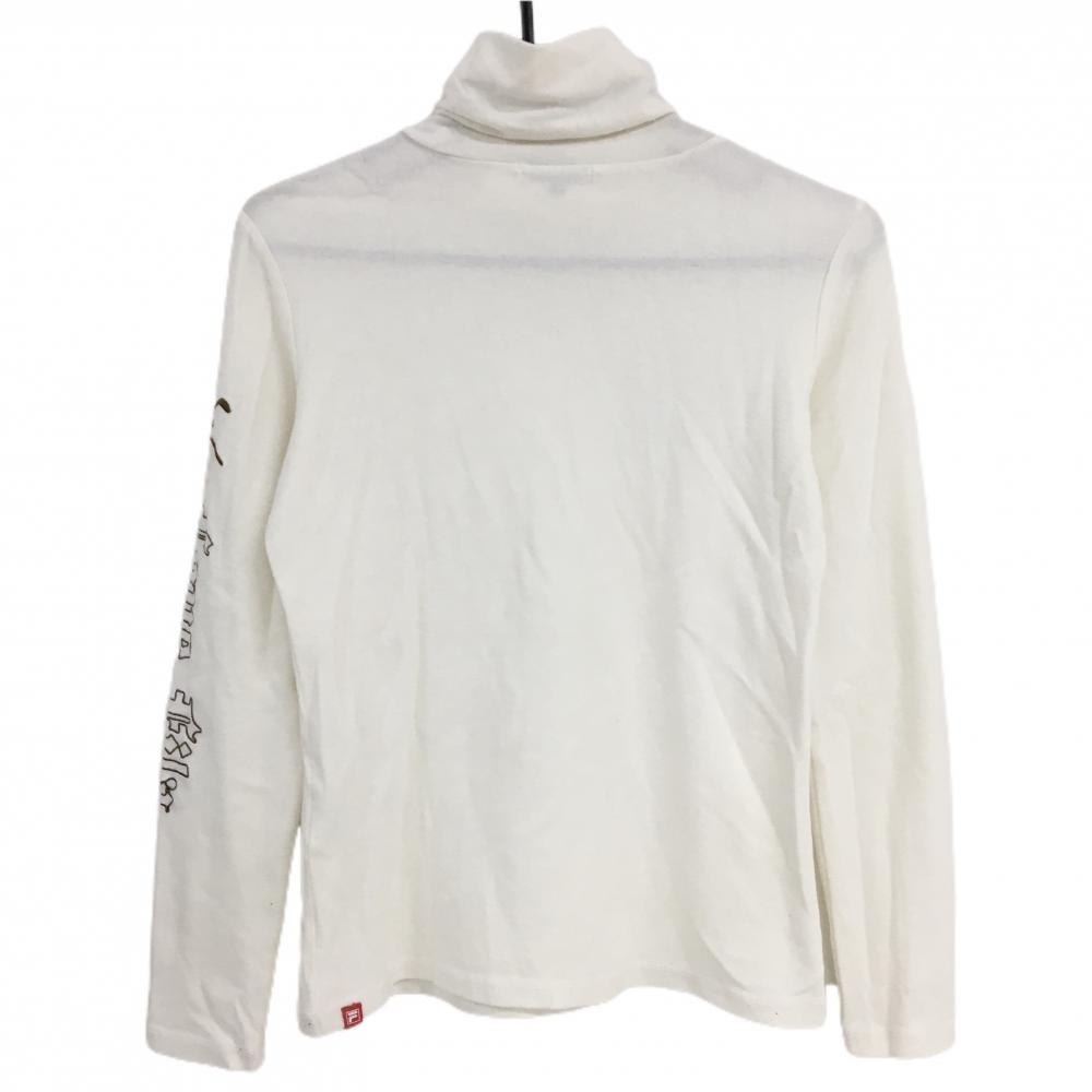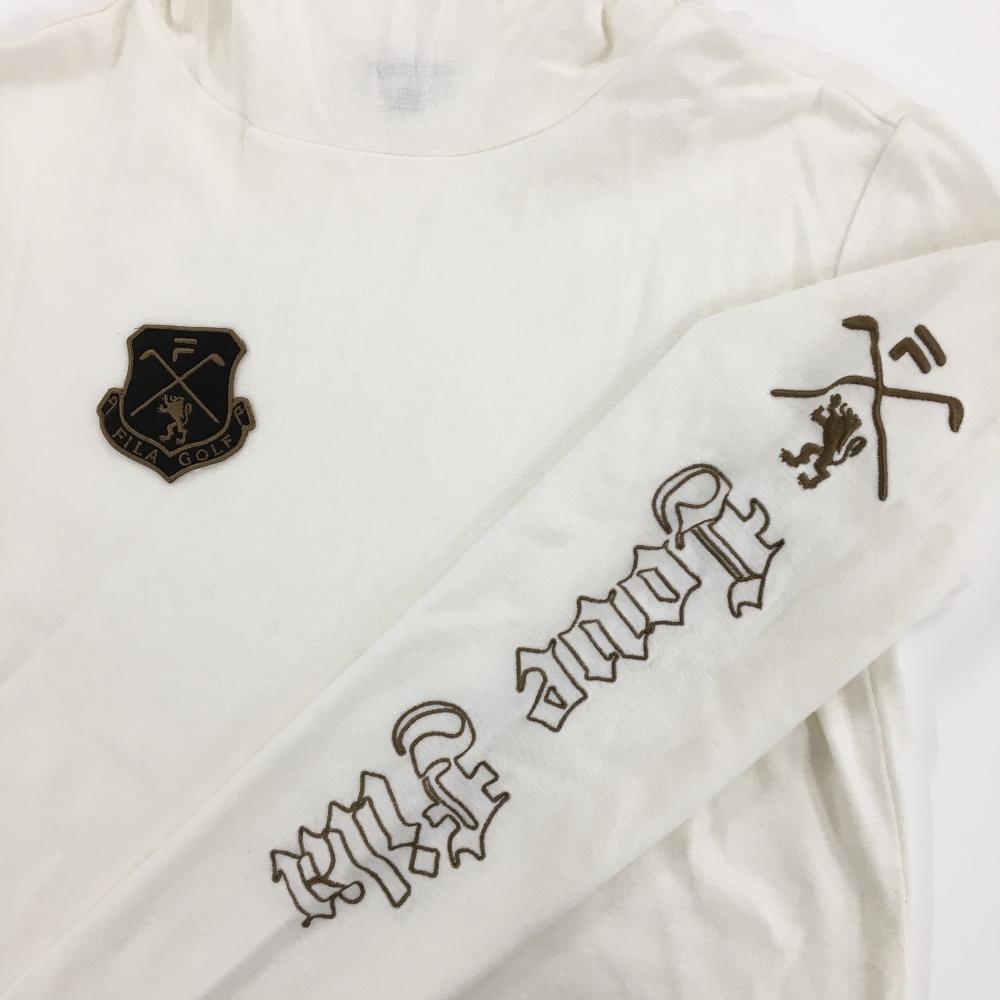 【美品】フィラゴルフ 長袖ハイネックシャツ 白×ブラウン 表微起毛 アクリル混 ワッペン レディース M ゴルフウェア FILA GOLF