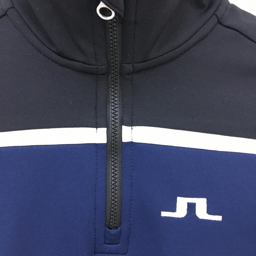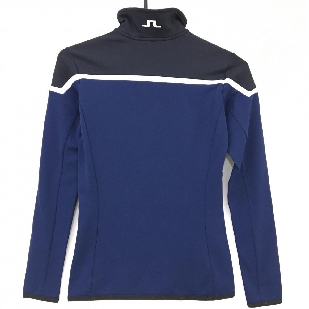 【美品】ジェイリンドバーグ ハイネックトレーナー ネイビー×黒 ハーフジップ 裏微起毛 切替 レディース XS ゴルフウェア J.LINDEBERG