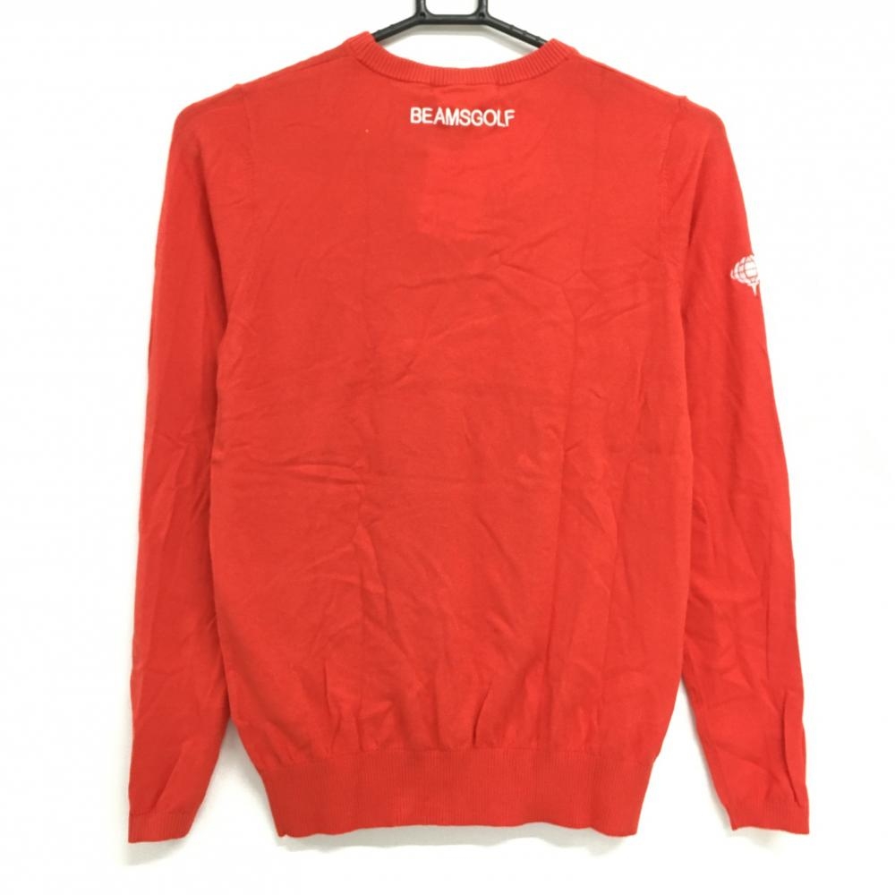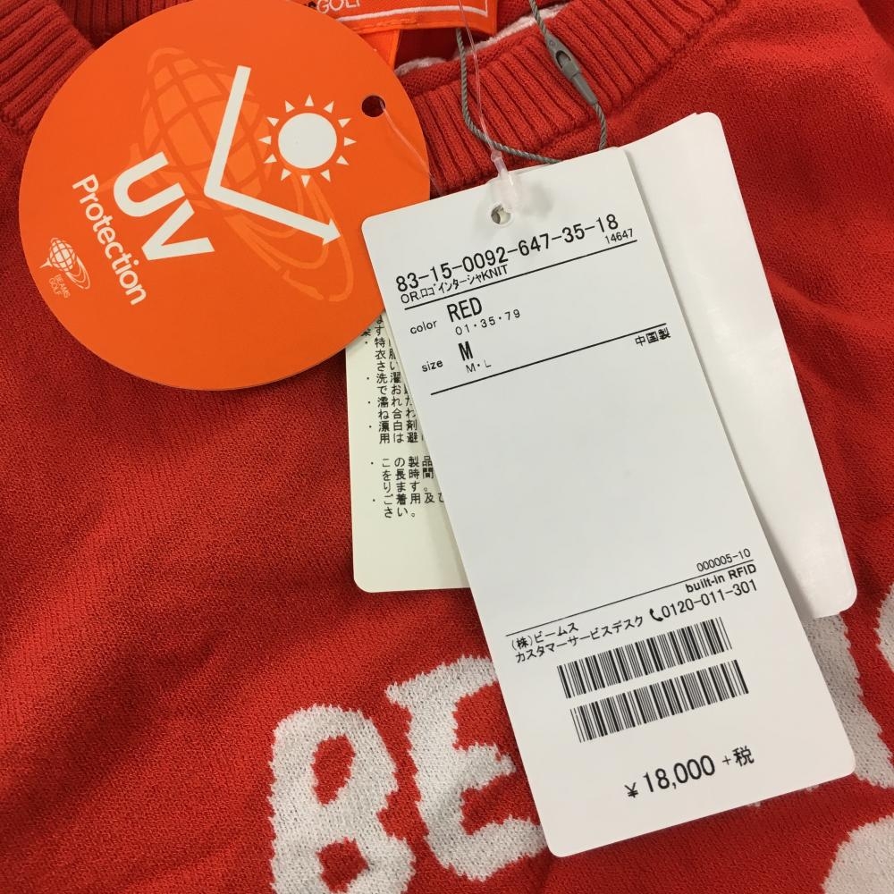 【新品】ビームスゴルフ セーター レッド×白 ニット UVカット 薄手 レーヨン混 レディース M ゴルフウェア BEAMS GOLF