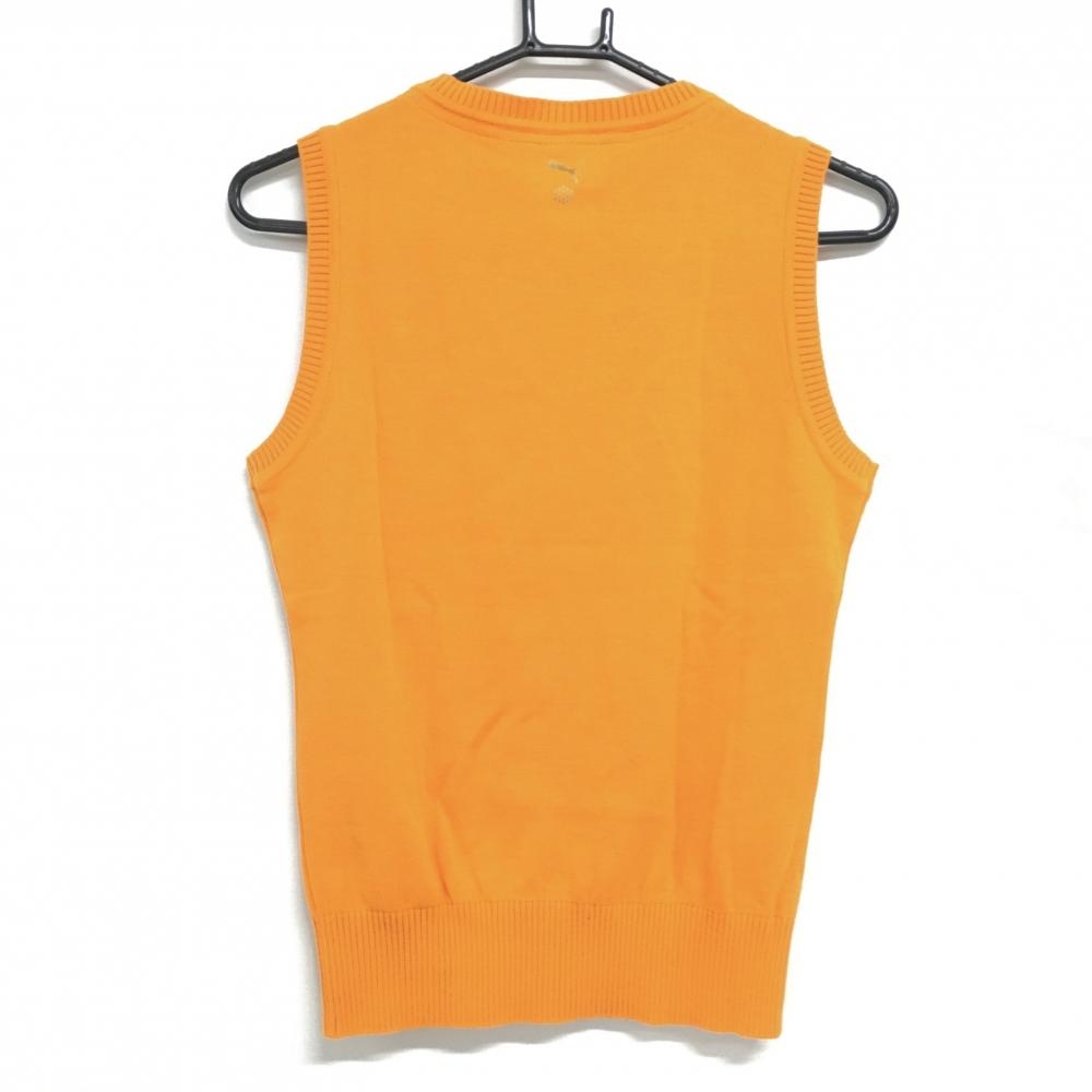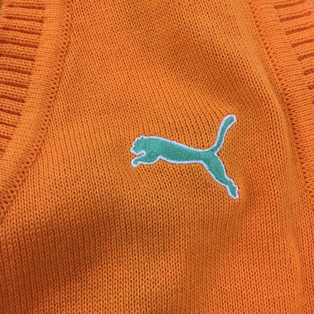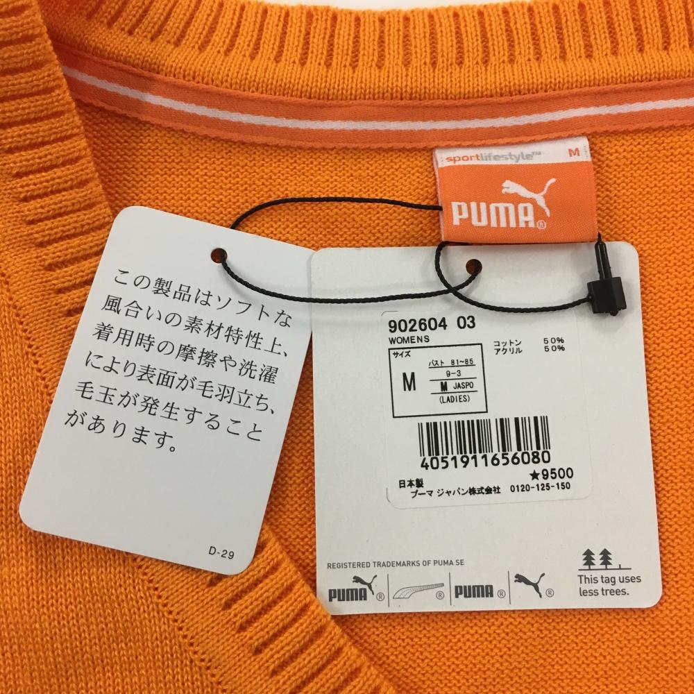 【新品】プーマ ニットベスト オレンジ アクリル混 Vネック ロゴ刺しゅう レディース M ゴルフウェア PUMA