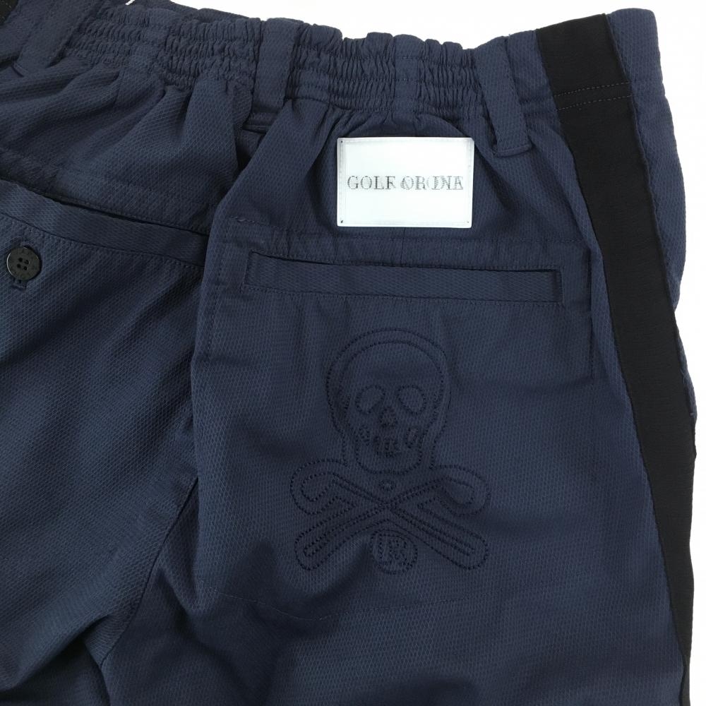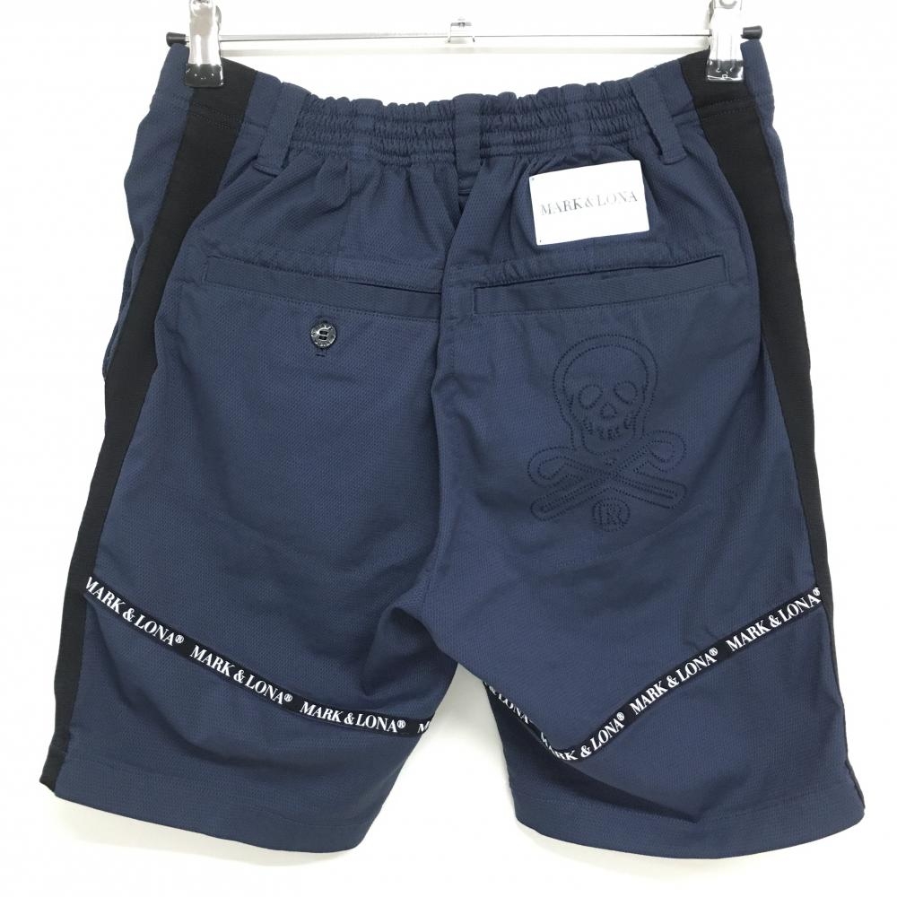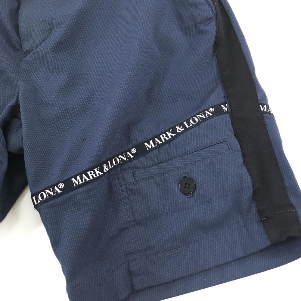 【新品】マークアンドロナ ハーフパンツ ネイビー 織生地 ロゴテープ メンズ 44(S) ゴルフウェア 2022年 木村拓哉着用モデル MARK&LONA