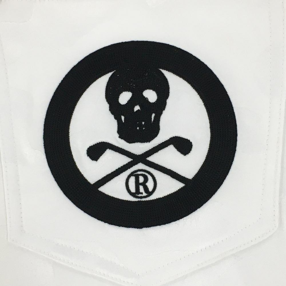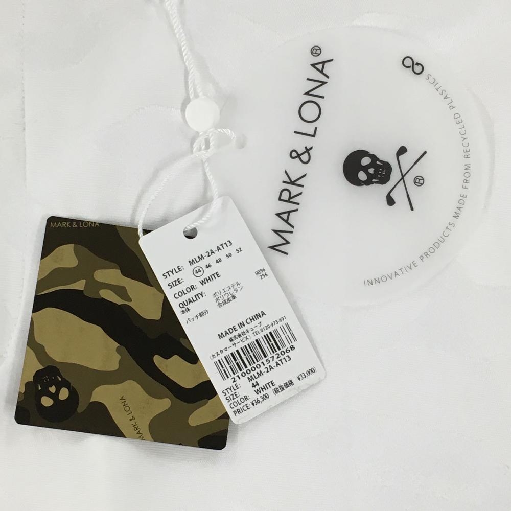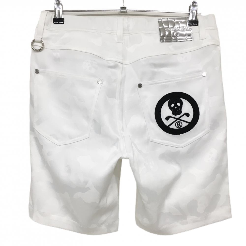 【新品】マークアンドロナ ハーフパンツ 白 カモフラ柄織生地 ヒップスカル刺しゅう メンズ 44(S) ゴルフウェア 20222年モデル MARK&LONA