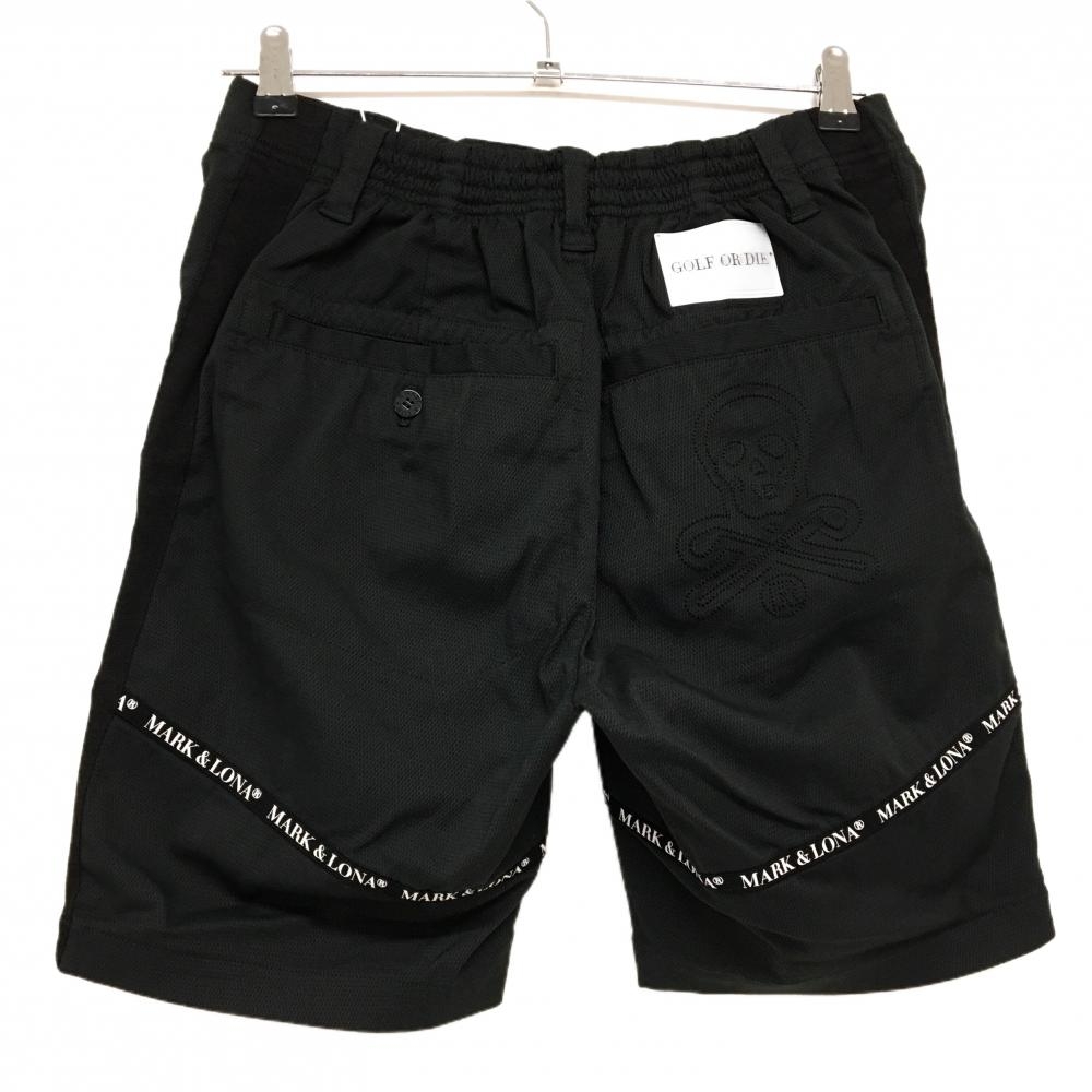 【新品】マークアンドロナ ハーフパンツ 黒 織生地 ロゴテープ スカル メンズ 44(S) ゴルフウェア 2022年 木村拓哉着用モデル MARK&LONA