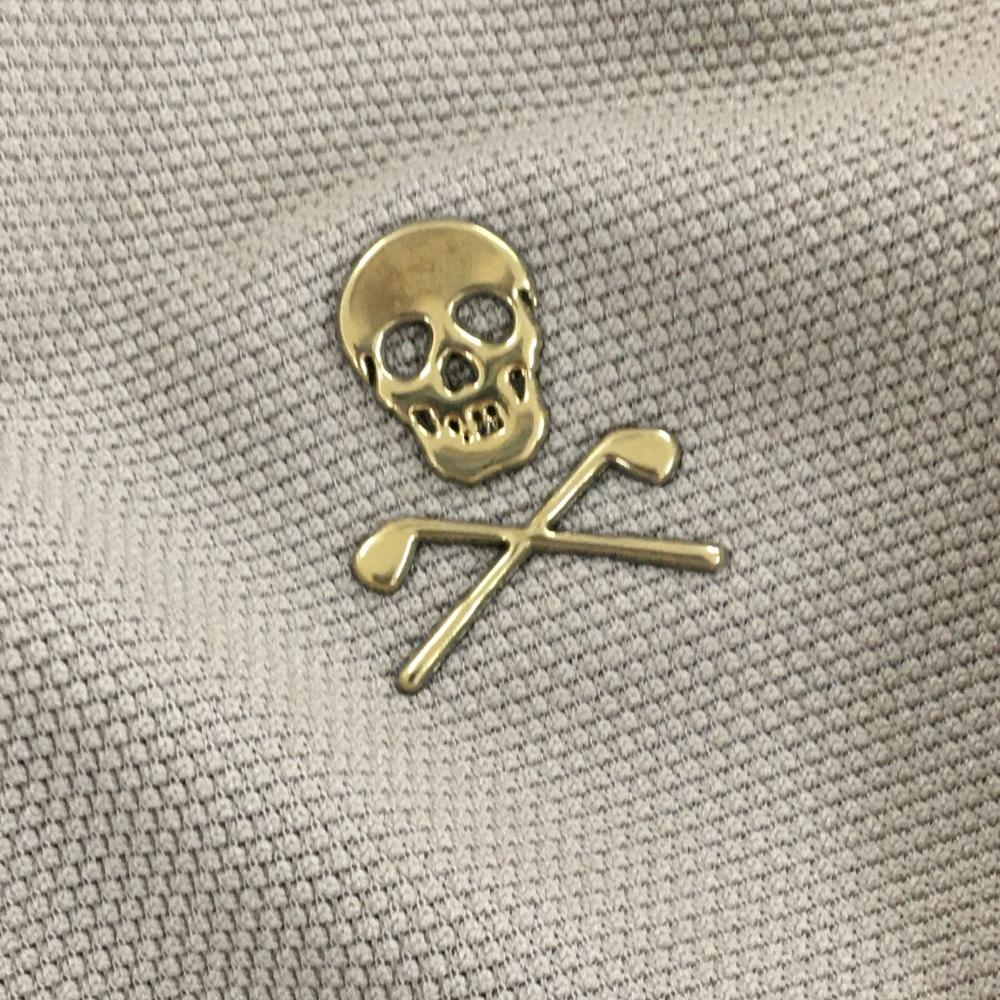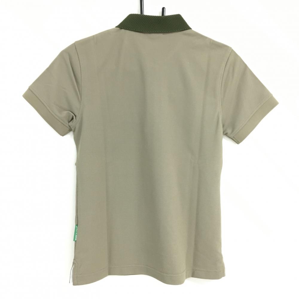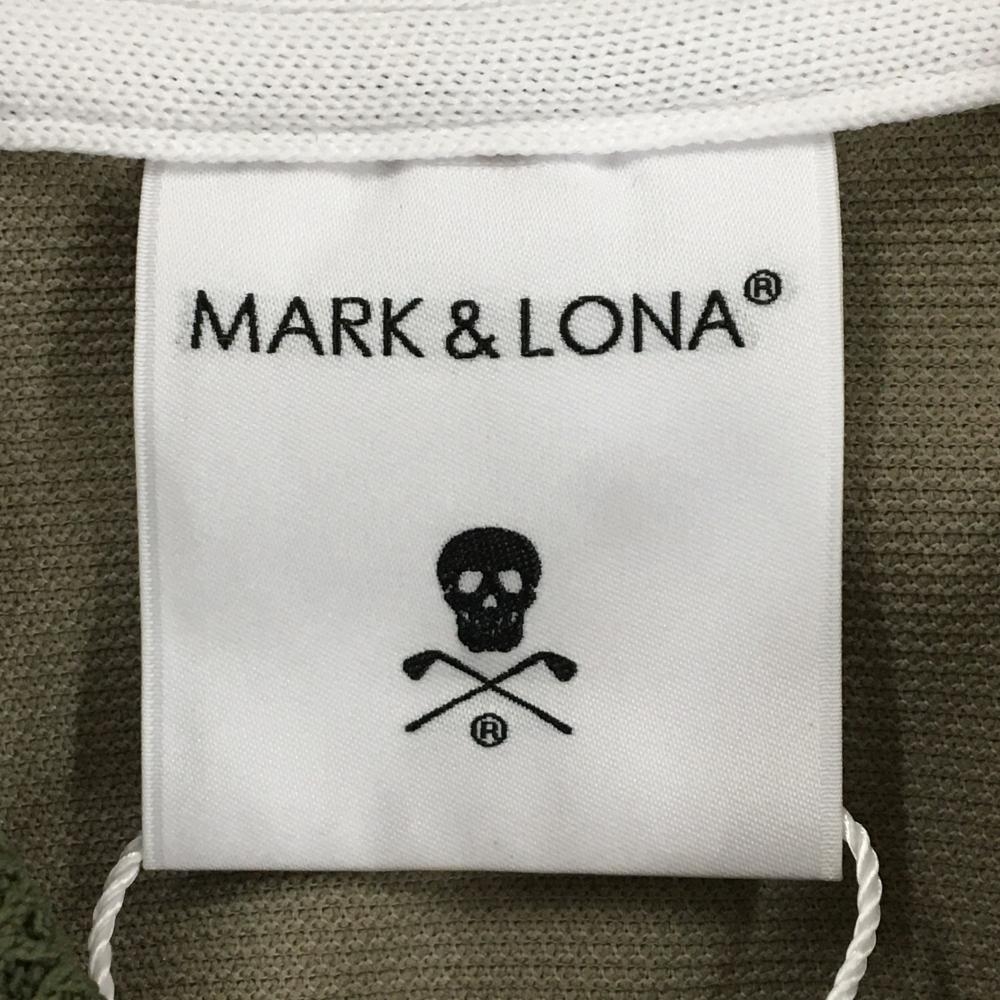 【新品】マークアンドロナ 半袖ポロシャツ カーキ 胸スカルプリント 襟ニット レディース 36(S) ゴルフウェア 2022年モデル MARK&LONA