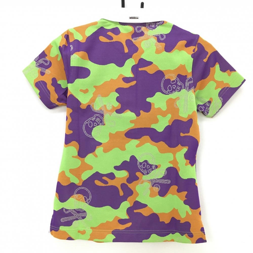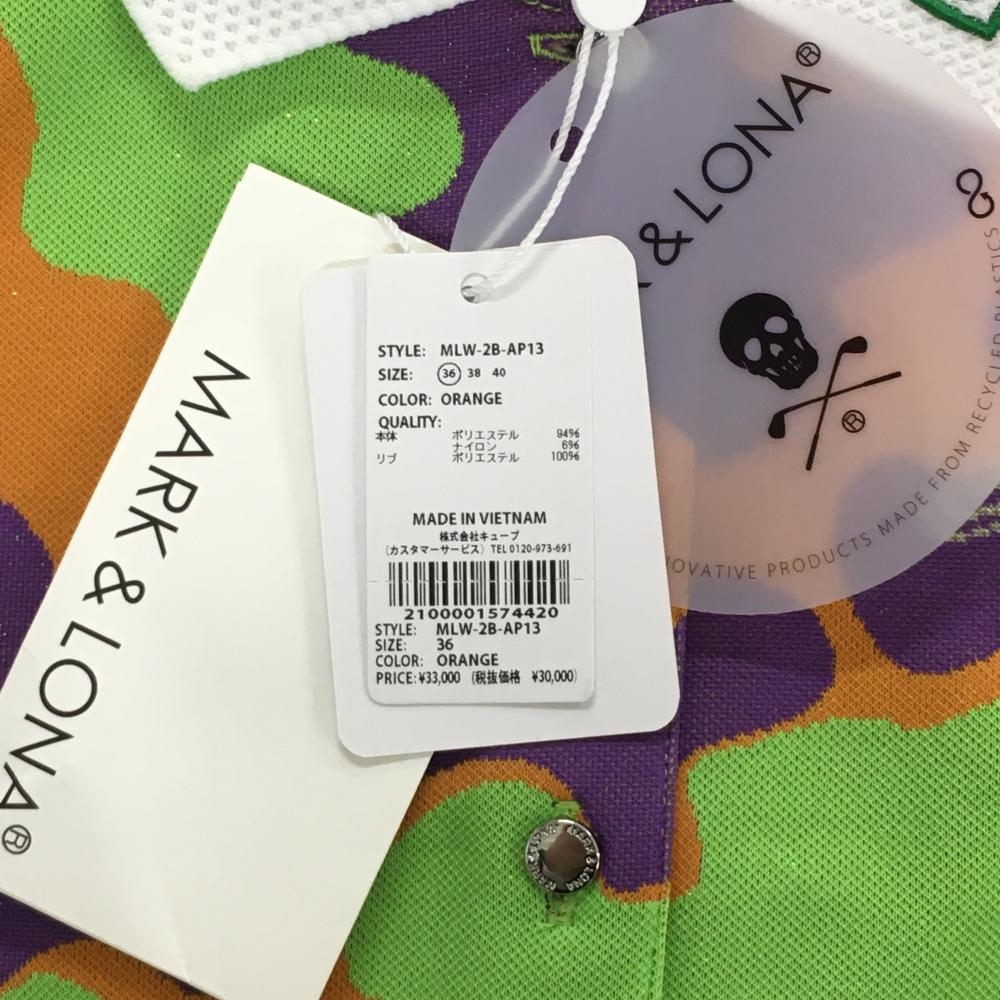 【新品】マークアンドロナ 半袖ポロシャツ ライトグリーン×パープル カモフラ柄 レディース 36(S) ゴルフウェア 2022年モデル MARK&LONA
